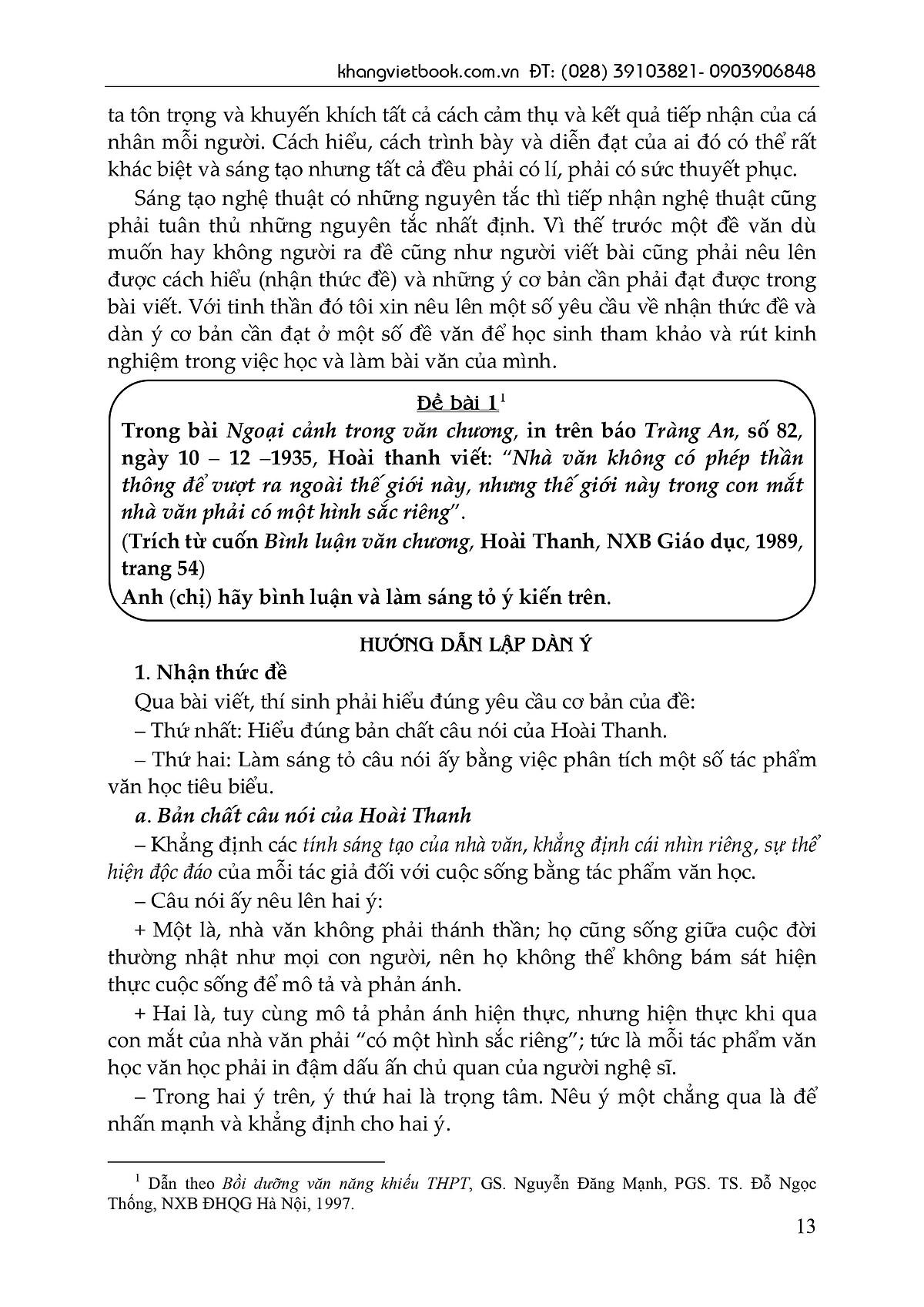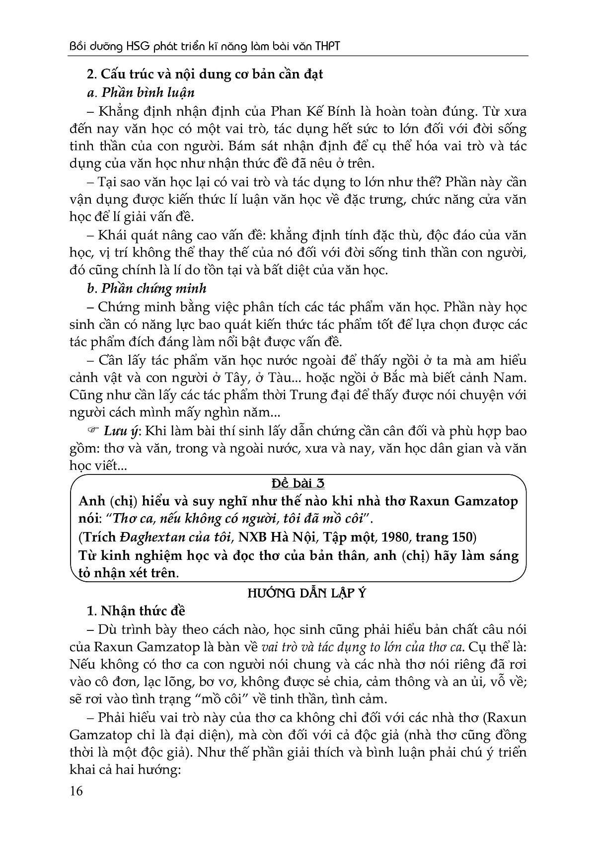 Bồi Dưỡng Học Sinh Giỏi, Phát Triển Kĩ Năng Làm Bài Văn Trung Học Phổ Thông giúp các em cảm nhận sâu sắc và mở rộng phạm vi kiến thức cơ bản. Bổ sung là những vấn đề có tính tổng hợp (nhận xét) được rút ra từ các tác phẩm văn học.