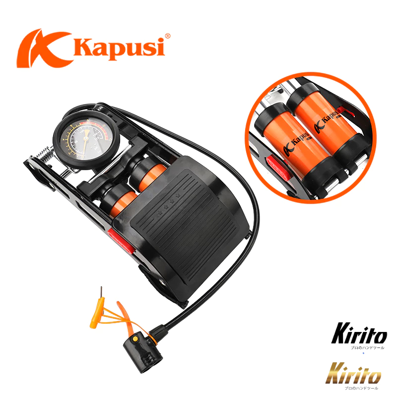 Bơm Đạp Chân Xe Đạp, Xe Máy Đa Năng 2 Xilanh KAPUSI Thép Không Gỉ, Bền Đẹp - Vua Kim Khí