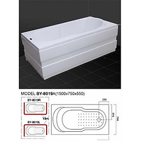 Bồn tắm massage Brother BY-8019A Xuất xứ Hãng sản xuất : BROTHER Sản xuất và lắp ráp tại Việt Nam Thông số kỹ thuật Bồn tắm Brothers BY-8019A Loại : Bồn tắm có chân, yếm