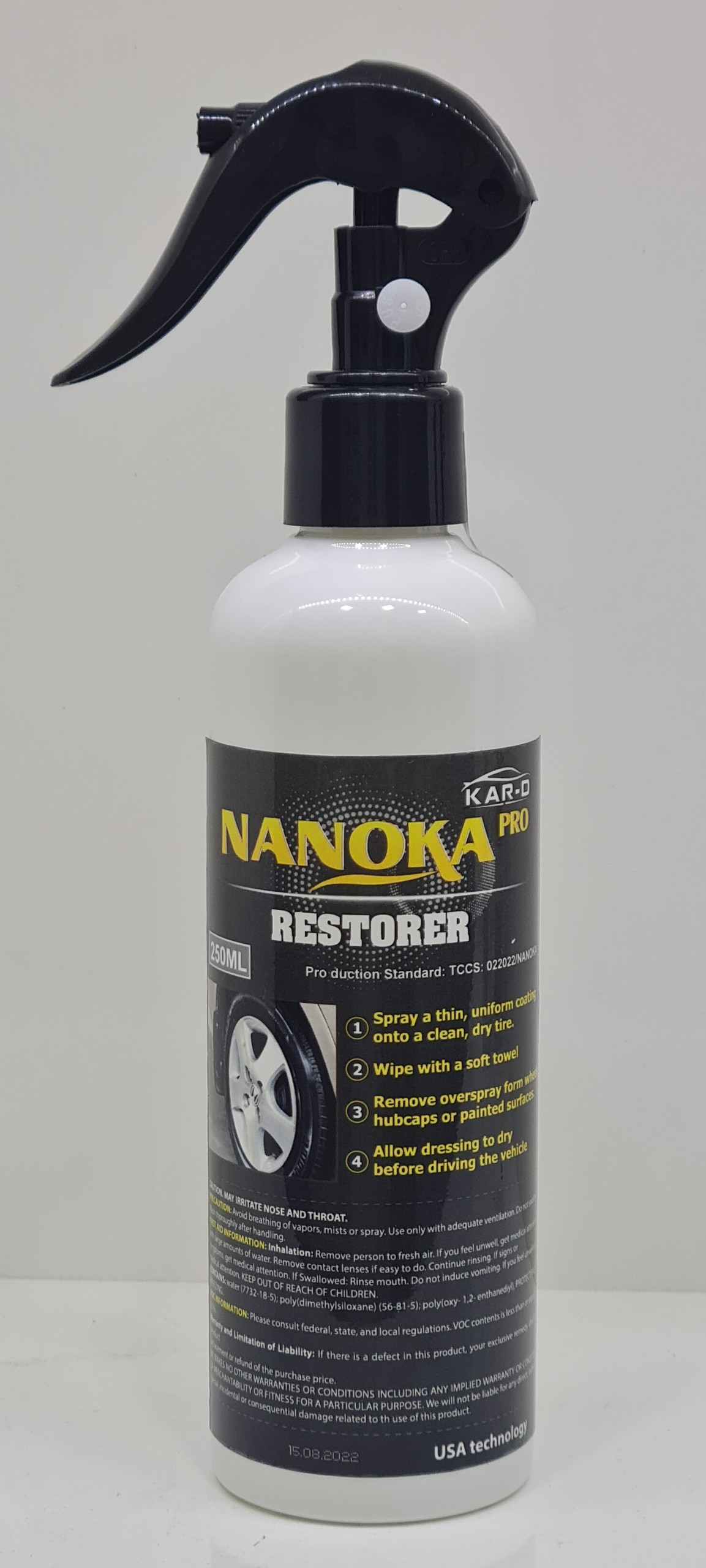 Chai xịt Dưỡng đen bóng lốp Nanoka Pro - sản xuất công nghệ USA, làm sạch và tái tạo độ bóng tự nhiên cho bề mặt cao su của lốp ô tô Thông tin sản