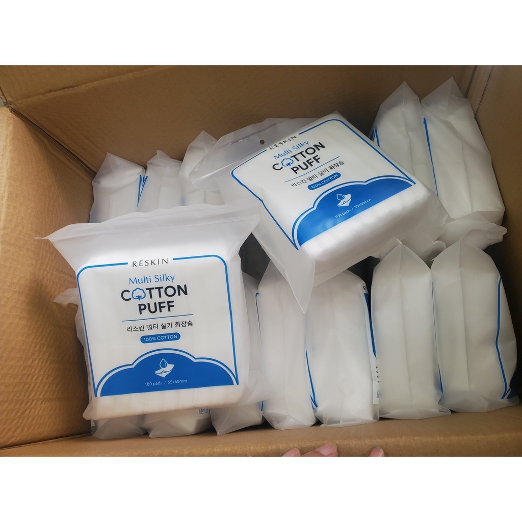 ✨Bông tẩy trang 3 lớp 2 mặt Cotton 180 miếng Reskin Multi Silky Cotton Puff - Không xơ bông trên da
