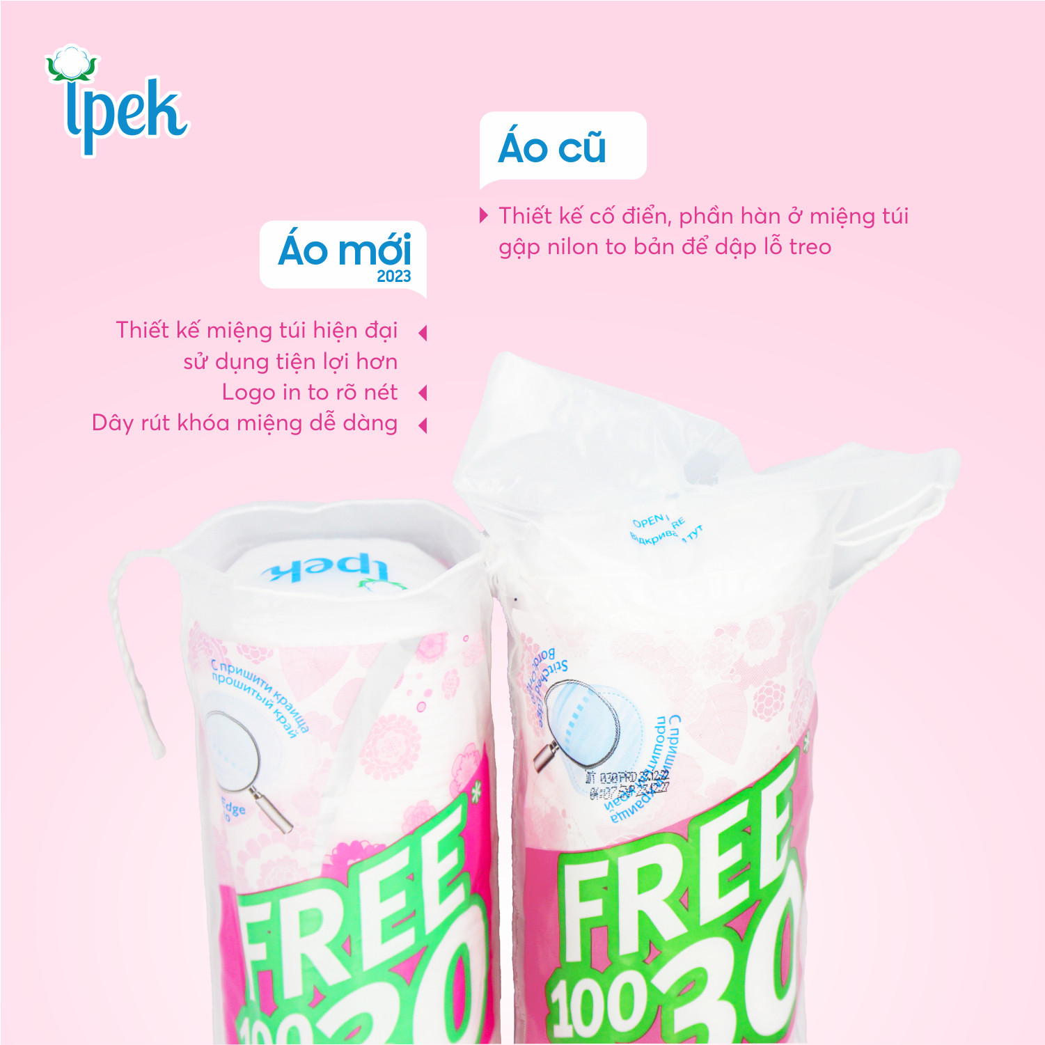 - Bông tẩy trang Ipek với công nghệ sản xuất tiên tiến giúp tẩy trang và làm sạch mọi bụi bẩn bám trên da bằng nước sạch, nước tẩy trang hay nước hoa hồng chăm sóc da.