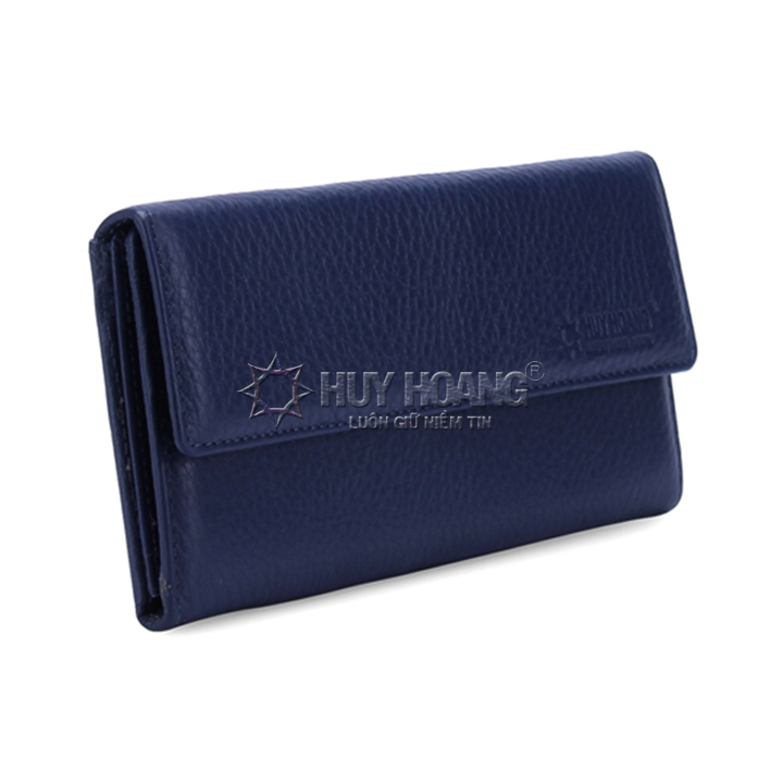 Ví/Bóp nữ da bò Huy Hoàng 3 gấp lửng màu xanh dương 3160