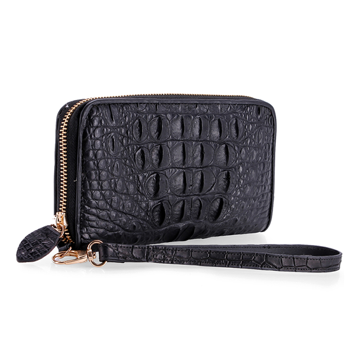 Ví/Bóp nữ da bò Huy Hoàng vân cá sấu nhỏ 1 khóa màu đen 3170