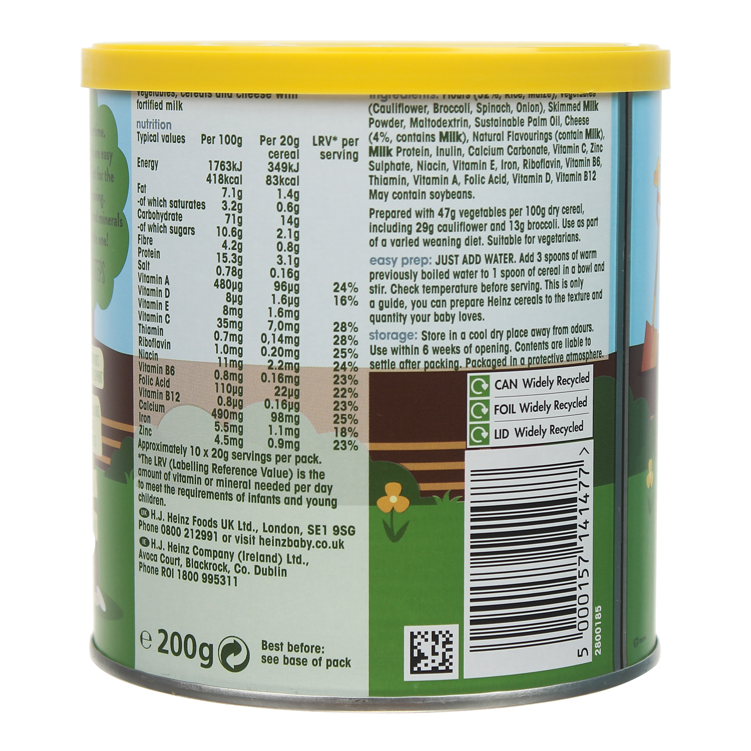 Mua tại Tiktok***LƯU Ý:Từ tháng 5/2020, nhằm tuân theo hướng dẫn của Tổ Chức Y Tế Và Sức Khỏe Cộng Đồng Anh. Sản phẩm bột ăn dặm Heinz được khuyến cáo bắt đầu bổ sung cho trẻ từ 6 tháng trở lên. Điều này dẫn tới có sự thay đổi trên nhãn một số sản phẩm bột từ 4 tháng thành 6 tháng. Về mặt thành phần không có sự thay đổi nào. Điều này có nghĩa rằng tất cả sản phẩm bột ăn dặm Heinz loại lon 200gr và 240gr không sử dụng nhãn dành cho trẻ từ 4 tháng nữa. Dành cho bé từ 6 tháng tuổi trở lên. Bổ sung đầy đủ 12 loại vitamin và khoáng chất. Bột có hạt lợn cợn, giúp bé tập nhai và phát triển nướu răng. Là sản phẩm được chế biến sẵn để ăn bổ sung thêm cùng với sữa mẹ.