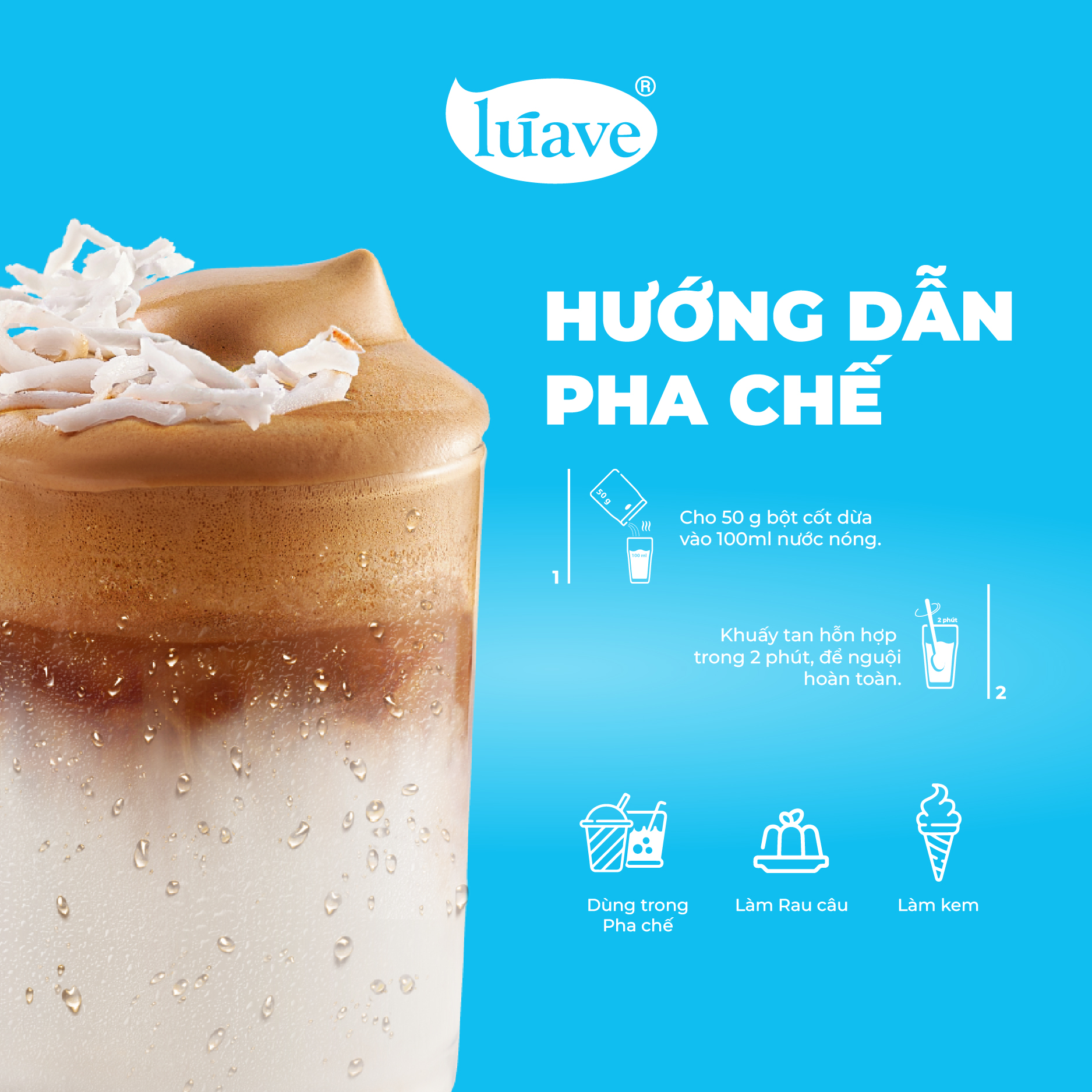 Bột cốt dừa Lúave - Hương vị tự nhiên, ngậy béo vị dừa Bột cốt dừa là nguyên liệu không thể thiếu để pha chế nên các món thức uống thơm ngon, béo ngậy. Nhưng