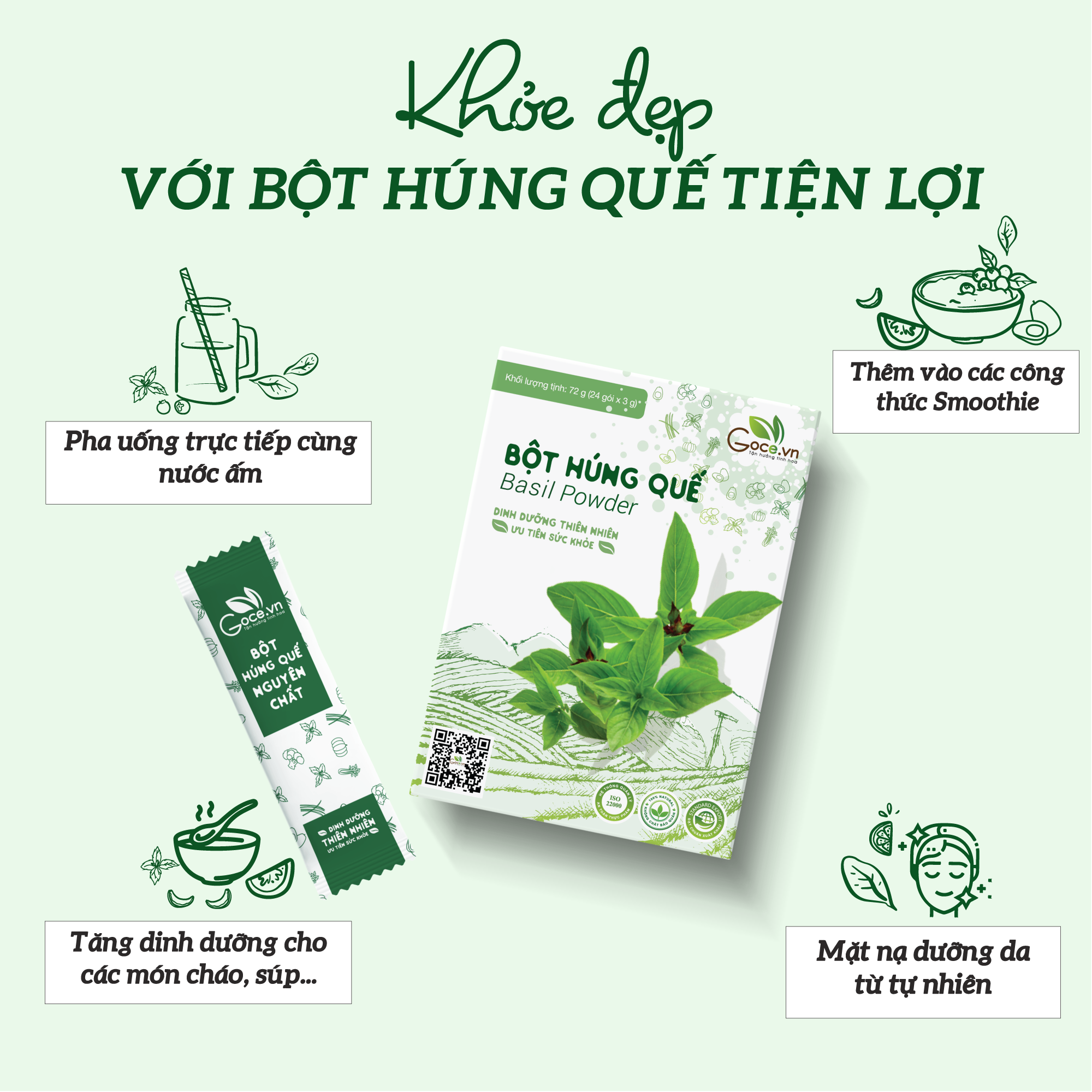 ✨Bột húng quế nguyên chất Goce - 72g (24 gói x 3g)
