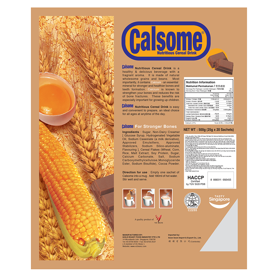 Ngũ cốc Calsome là thức uống thơm ngon bổ dưỡng có chứa canxi rất quan trọng, được sản xuất từ ngũ cốc và các loại hạt đậu.