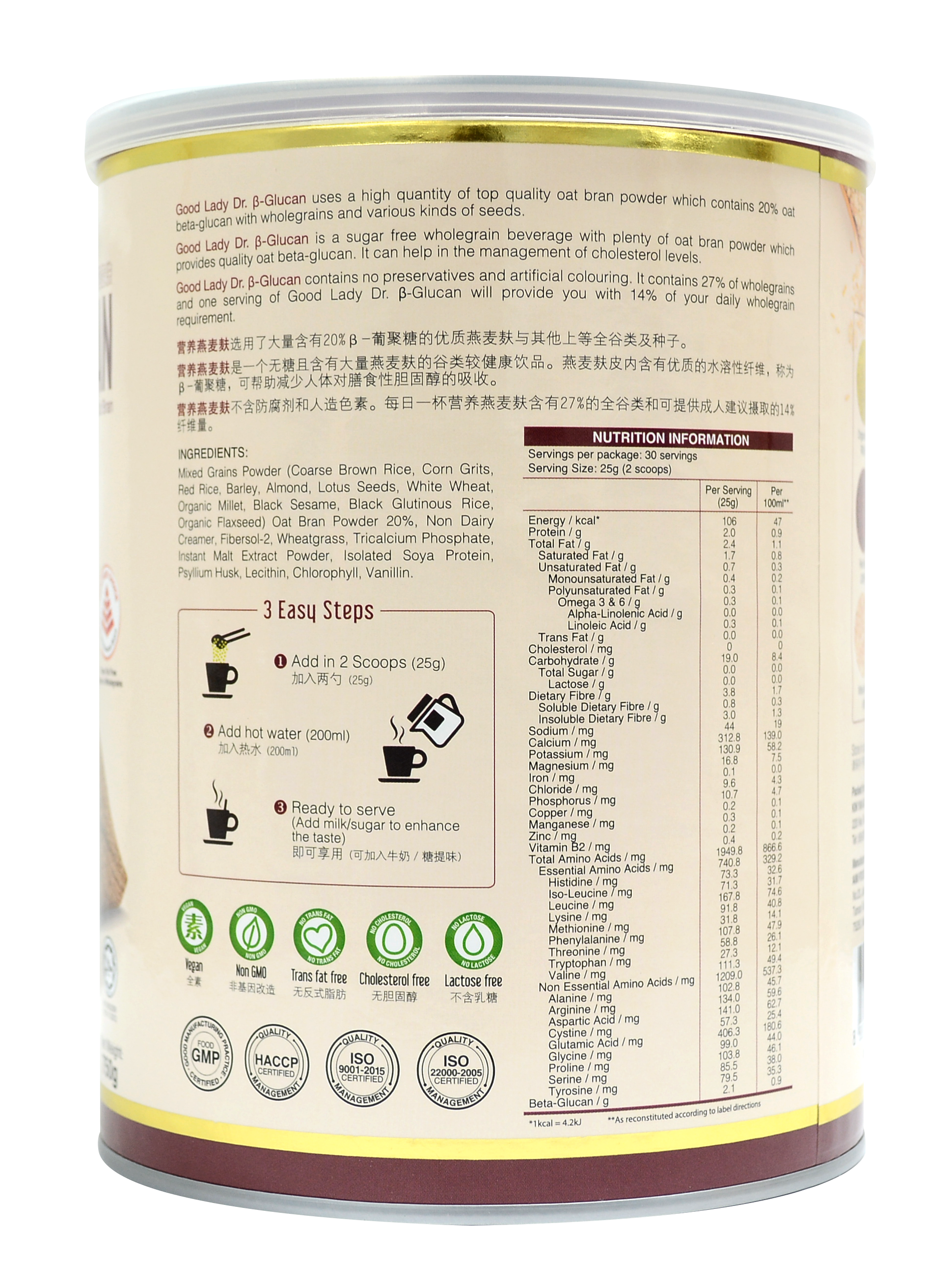 Ngũ cốc dinh dưỡng 22 Complete Nutrimix Dr B Glucan của SINGAPORE