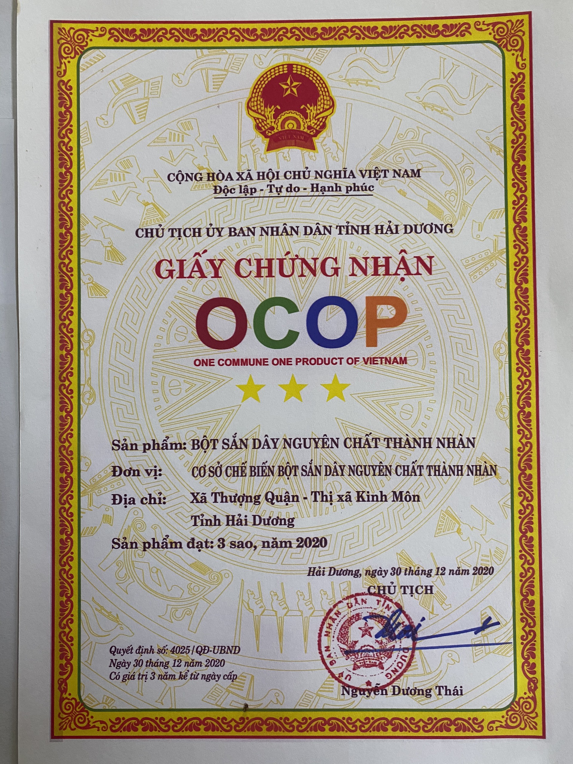 Mua tại TiktokBột sắn dây nguyên chất Thành Nhàn được sản xuất 100% từ nguyên liệu tự nhiên là sắn dây ta được trồng tại xã Thượng Quận – Kinh Môn – Hải Dương. Với nguồn nguyên liệu sạch và quy trình chế biến tuân thủ các quy định an toàn thực phẩm khắt khe nhất cho ra sản phẩm bột sắn dây chất lượng nhất đảm bảo yêu cầu về an toàn thực phẩm và được cấp giấy chứng nhận an toàn thực phẩm, sản phẩm ocop 3 sao cấp tỉnh, chứng nhận chất lượng HACCP Công Dụng của bột sắn dây nguyên chất Thành Nhàn: Thanh nhiệt, giải độc, chống táo bón Hỗ trợ tiêu hóa, cải thiện cực tốt chứng trào ngược dạ dày Làm đẹp da, làm mờ vết tàn nhang. Giải cảm, chống say nắng. Cải thiện kích thước vòng 1. Tốt cho phụ nữ mang thai.