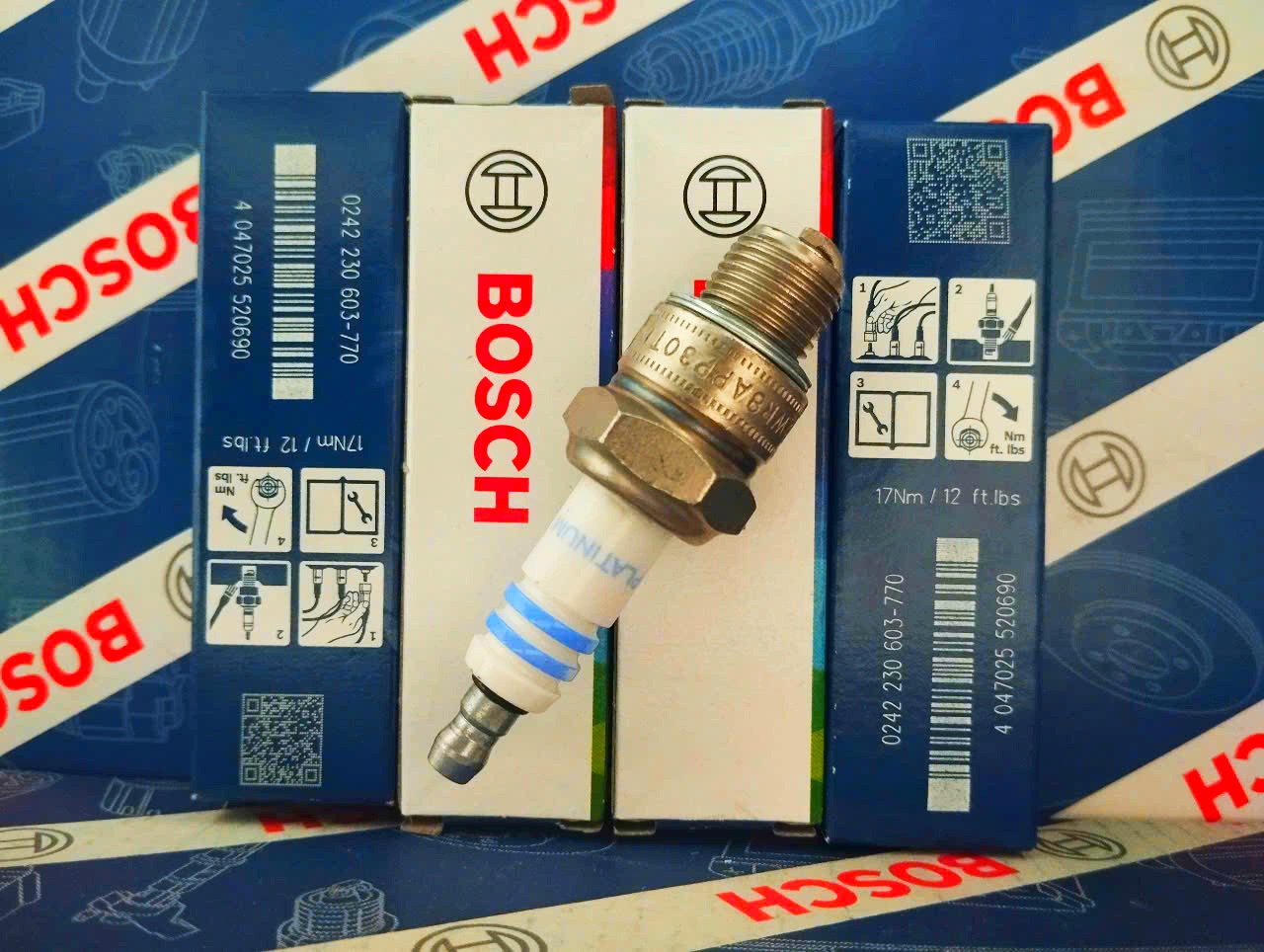 Bộ Bugi siêu cấp của Bosch với 4 điện cực âm bằng Platium gia cường cho phép đánh lửa đa hướng, tạo tia lửa điện cực mạnh và tuổi thọ cực cao lên đến 100.000