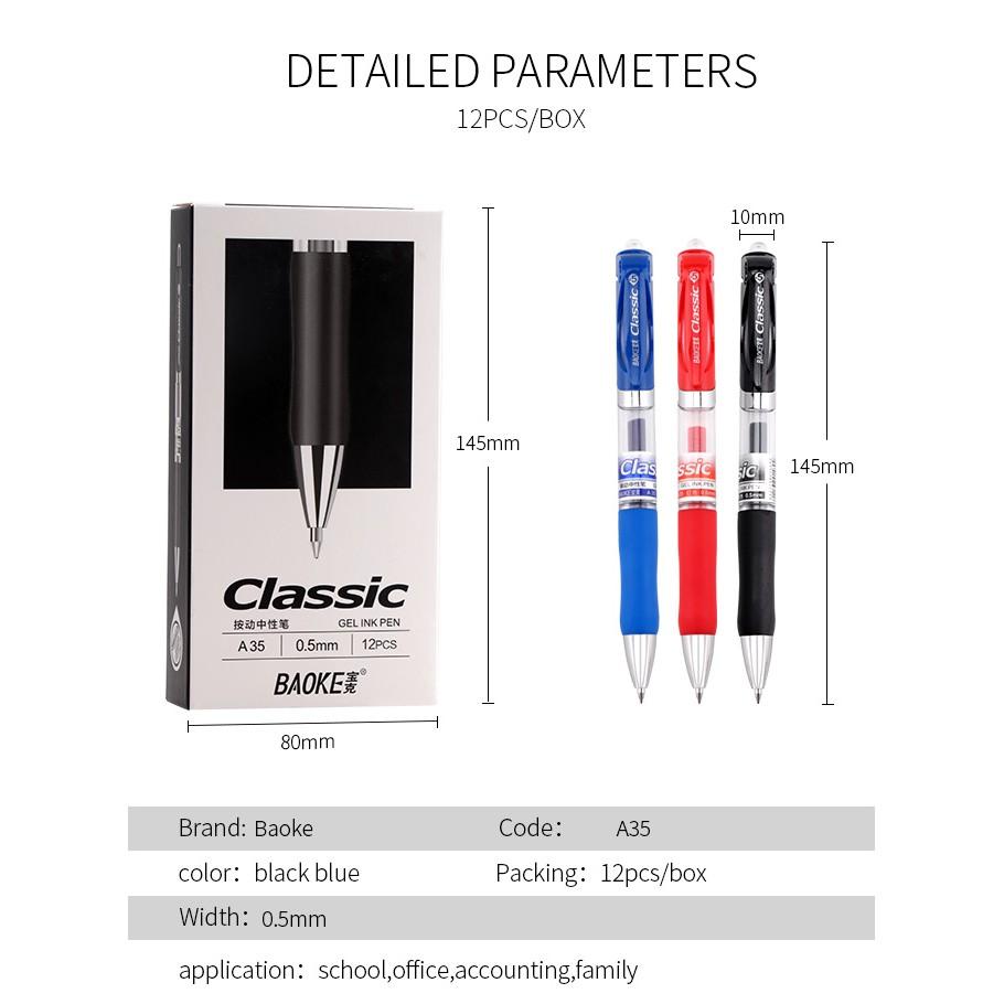 ✨Bút bi bấm đầu 3 màu -12 cây /hộp bút gel BAOKE/B35