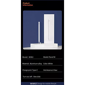 Bút Cảm Ứng Wiwu Pencil W Dành Cho iPad Pro và các dòng iPad / iPad Mini Sạc Không Dây Từ Tính Mô tả sản phẩm - Thương Hiệu : WIWU - Chất liệu: Hợp