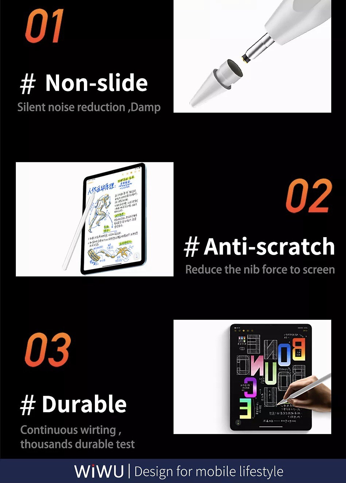 - Tương thích với ngòi bút chì táo chống xước màn hình, bền