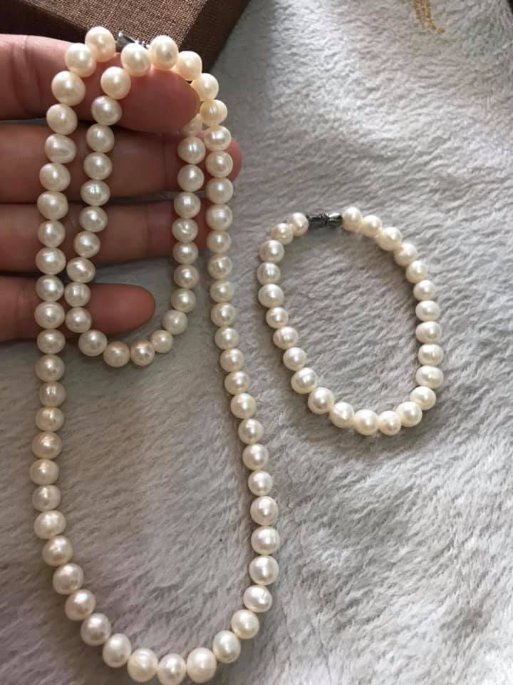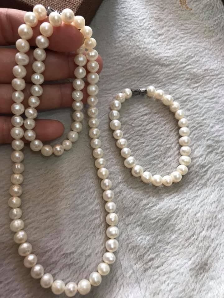 ✨CẢ BỘ VÒNG TAY VÀ DÂY CHUỖI CHẤT LIỆU NGỌC TRAI SIZE HƠN 7MM