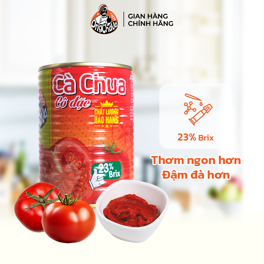 Mua tại TiktokCÀ CHUA CÔ ĐẶC 400G – NGUYÊN CHẤT TỪ THIÊN NHIÊN, ĐẬM ĐÀ HƯƠNG VỊ Ý Với thành phần lên đến 90% cà chua tươi chọn lọc, không chất bảo quản, độ Brix 23 – sản phẩm đậm đặc, sánh mịn, giữ nguyên màu sắc và hương vị tự nhiên của cà chua chín mọng. LÝ DO NÊN CHỌN CÀ CHUA CÔ ĐẶC 400GR ÔNG CHÀ VÀ
