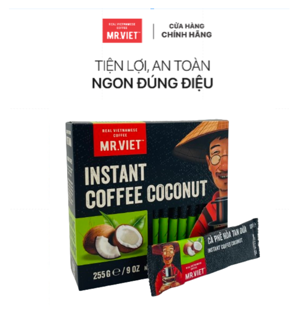 Cà phê hòa tan, cà phê hoà tan Dừa vị đậm đà - MR.VIET Coffee (15gói/hộp x 17g)