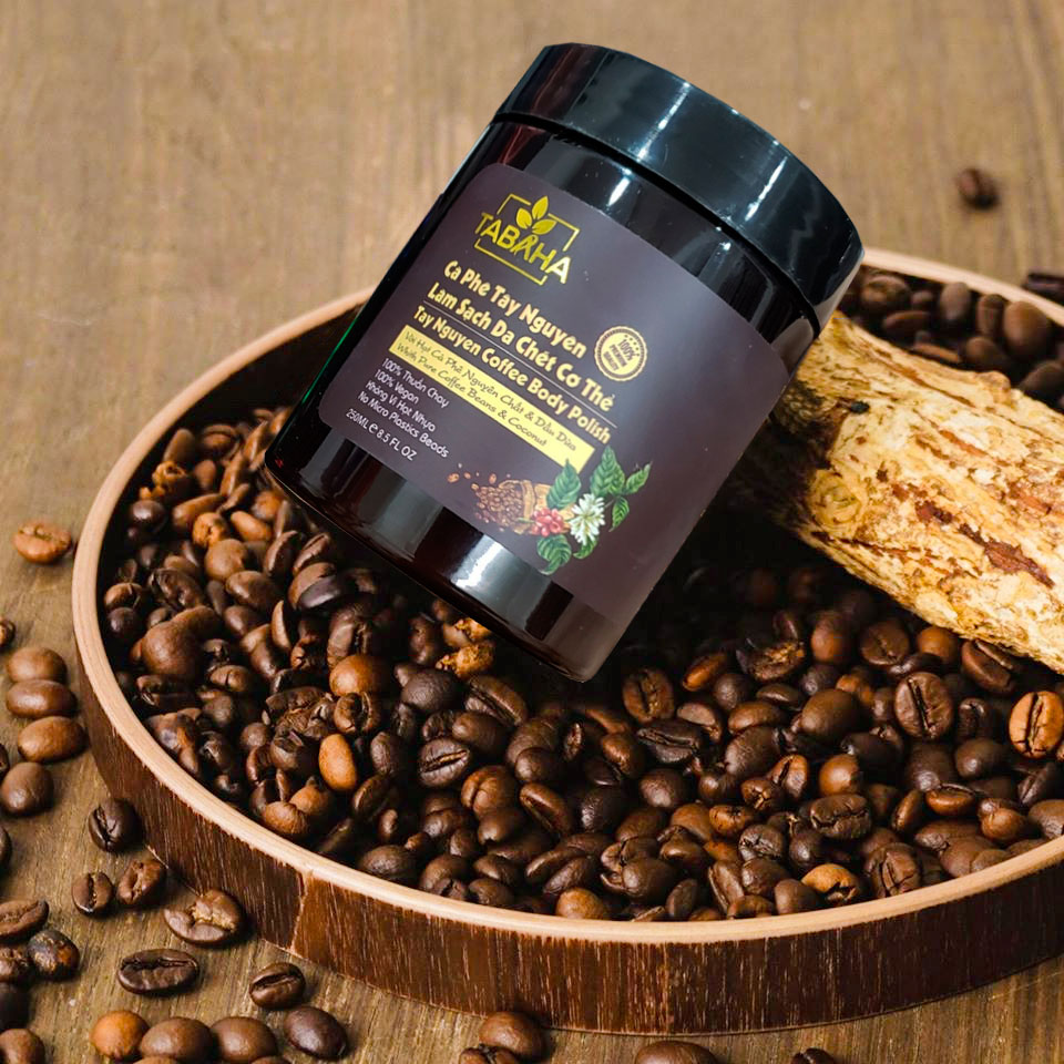 Tẩy tế bào chết là bước quan trọng nhất định phải có trong quy trình dưỡng da. Bởi da luôn luôn đào thải tế bào già cỗi mỗi ngày nên trên da sẽ tích tụ các lớp da chết, ngày qua ngày dẫn đến tình trạng da sần sùi, bít tắc lỗ chân lông gây nên các vấn đề như lão hóa, mụn, da khó hấp thu dưỡng chất. Chính vì thế bạn cần tẩy da chết bằng các sản phẩm tẩy da chết chuyên dụng để hỗ trợ da nhanh chóng đào thải các tế bào này, mang lại làn da sáng khỏe, mịn màng.   Cà Phê Tây Nguyên Tẩy Da Chết Toàn Thân (Tay Nguyen Coffee Body Polish) từ thương hiệu Tabaha của Việt Nam là một trong những sản phẩm với thành phần tự nhiên có nguồn gốc trong nước như cà phê từ Tây Nguyên và Dầu Dừa Bến Tre, giúp mang đến cho bạn sản phẩm thuần chay ưu việt với niềm tự hào từ nguyên liệu thuần Việt. Cà Phê Tây Nguyên Tẩy Da Chết Toàn Thân Tabaha (Tay Nguyen Coffee Body Polish) là sản phẩm được tạo từ những hạt cà phê Tây Nguyên nguyên chất xay nhuyễn, hòa quyện cùng Dầu Dừa Bến Tre giúp loại bỏ tế bào chết hiệu quả, làm đều màu da, mang lại năng lượng, giúp da trở nên mềm mại và rạng rỡ.     Thành phần chính của sản phẩm bao gồm: Cà phê: giúp da trở nên săn chắc đều màu, mang lại nguồn năng lượng cho làn da luôn mềm mại và rạng rỡ. Dầu dừa Bến Tre: Có khả năng giữ ẩm tuyệt vời, giúp khóa độ ẩm cho làn da, làm mềm da khô, ngăn ngừa hình thành vết rạn và nếp nhăn trên da. Nhờ công thức tự nhiên này mà Tabaha Tay Nguyen Coffee Body Polish sẽ giúp bỏ da chết toàn thân hiệu quả và mang lại cho bạn làn da mịn màng ngay sau khi sử dụng. Da dần trở nên sáng mịn, đều màu hơn, đồng thời tăng cường lưu thông máu huyết dưới da và hỗ trợ giảm tình trạng da sần vỏ cam, viêm nang lông, dày sừng nang lông.Sản phẩm có hương thơm ngọt ngào quyến rũ như tách Mocha thơm lừng hương cà phê pha chút béo béo của dầu dừa.       Công dụng nổi bật: Loại bỏ da chết toàn thân mang lại làn da mịn màng ngay sau khi sử dụng Dưỡng ẩm cho da, ngăn ngừa tình trạng khô da, giúp da sáng mịn, đều màu. Tăng cường lưu thông máu huyết, trao đổi chất dưới da Giảm tình trạng da sần vỏ cam, viêm nang lông, dày sừng nang lông Giúp da hấp thụ dưỡng chất tốt hơn.     Tabaha cam kết sản phẩm: 100% thuần thuần chay, không chứa thành phần động vật và không thử nghiệm trên động vật. Không chứa vi hạt nhựa gây tắc nghẽn cống, ô nhiễm môi trường.