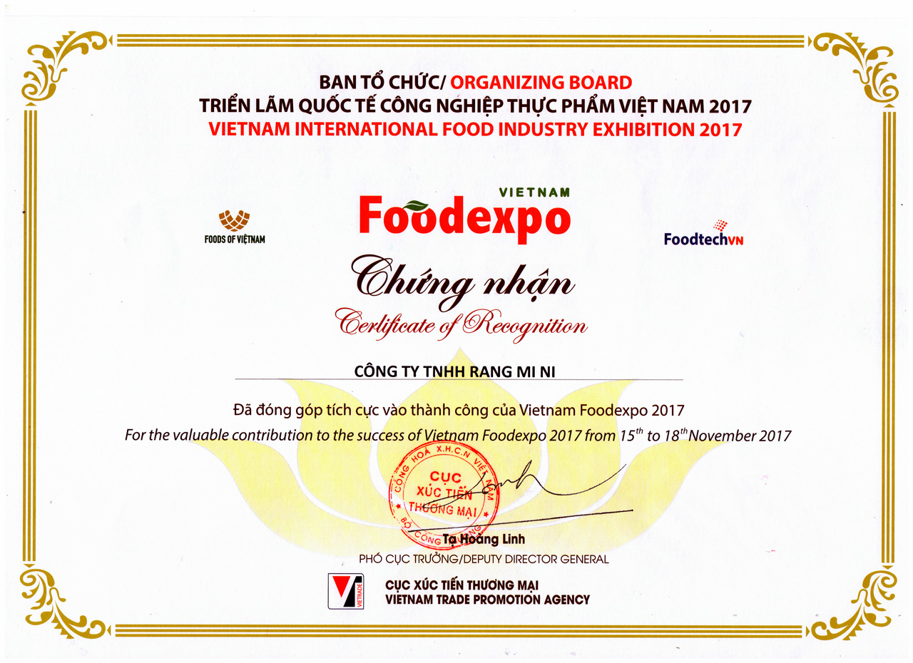 · Xác nhận công bố số: 2210/2017 ATTPHCM – XNCB cấp ngày 06/10/2017.