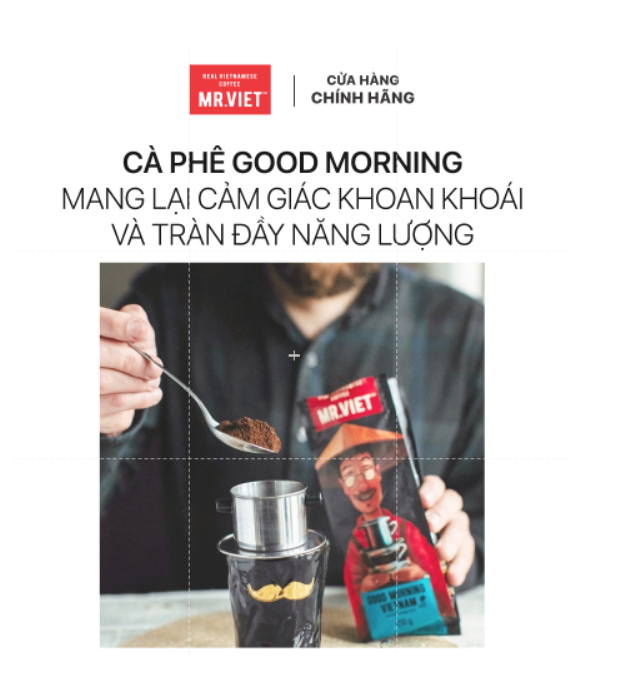 - Cà Phê Rang Xay Túi Good Morning Vietnam MR.VIET với thành phần 100% Robust Việt Nam vị hoà quyện đậm đà và hoàn hảo của hương thơm của bánh nướng đậm đà và mùi vị đặc trưng của ca cao đắng và cà phê rang.