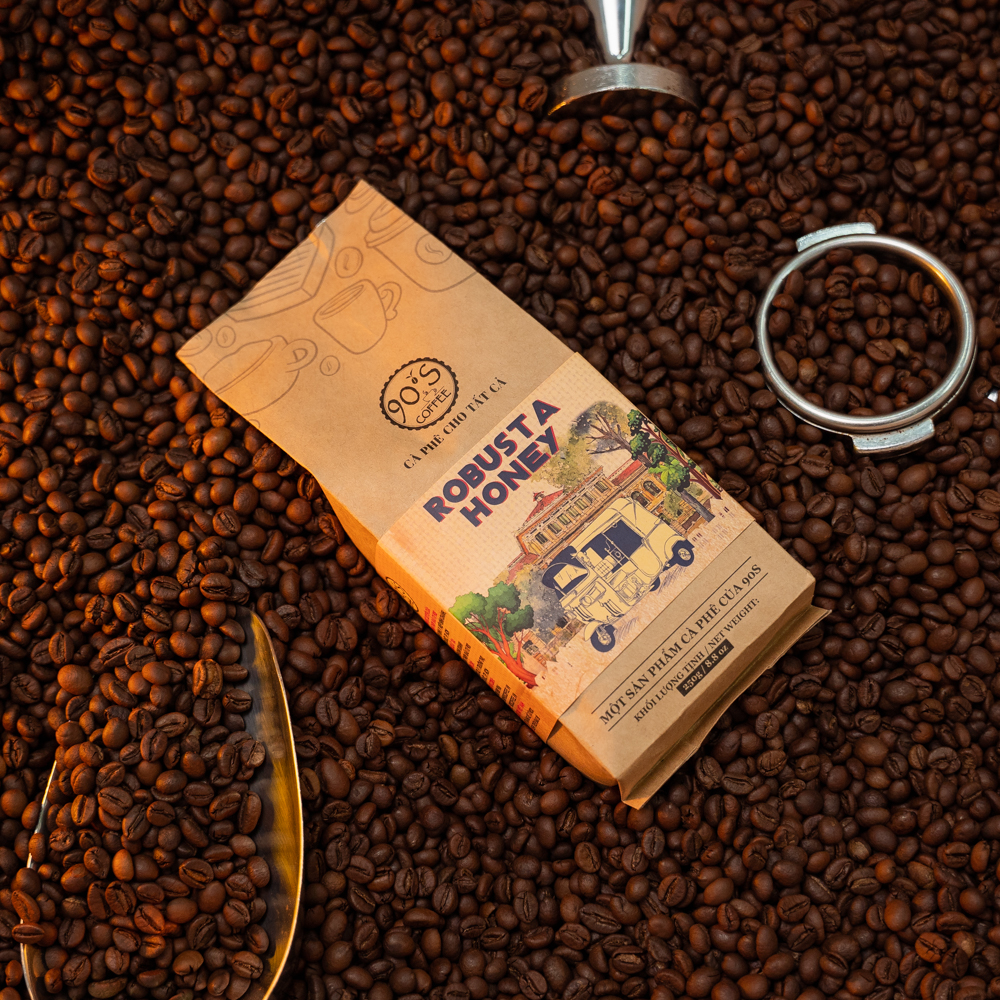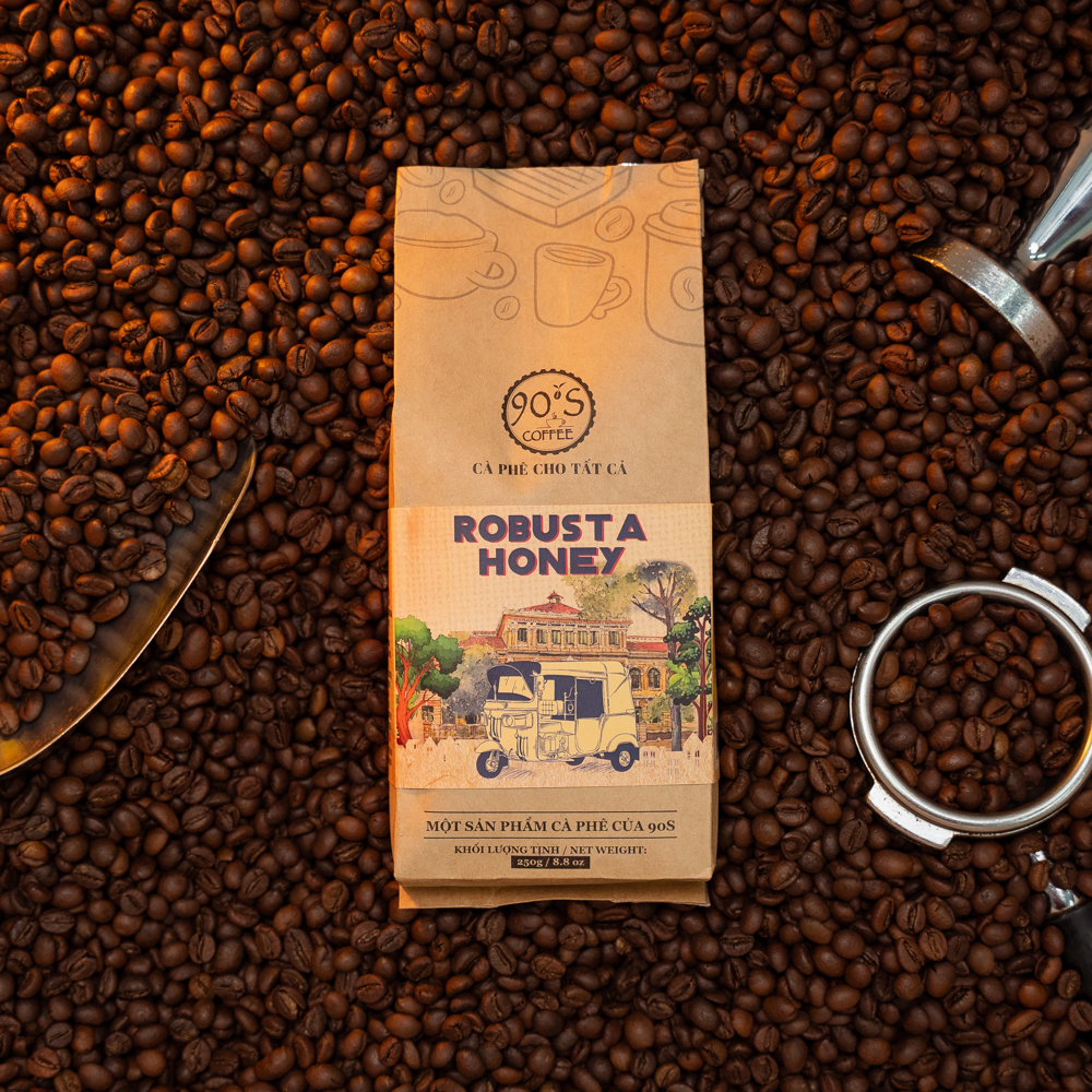 Cà phê bột Robusta Honey thuộc dòng sản phẩm cà phê rang mộc nguyên chất của 90S Coffee Vietnam. Đây là sản phẩm rất được ưa chuộng trong ngành cà phê bởi đặc tính đa dạng & sự phổ biến của nó.