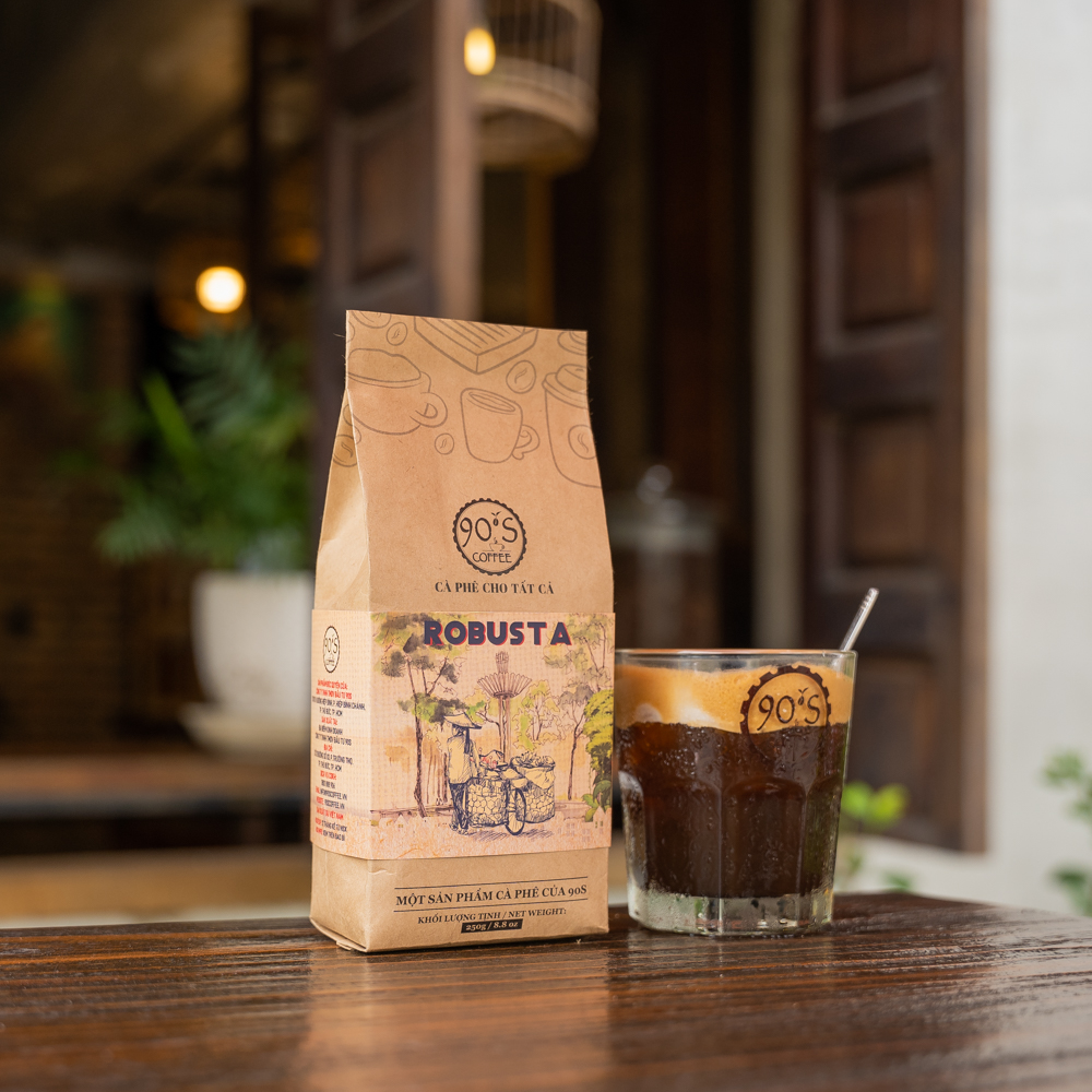 Cà phê bột Robusta thuộc dòng sản phẩm cà phê rang mộc nguyên chất của 90S Coffee Vietnam. Đây là sản phẩm rất được ưa chuộng trong ngành cà phê bởi đặc tính đa dạng & sự