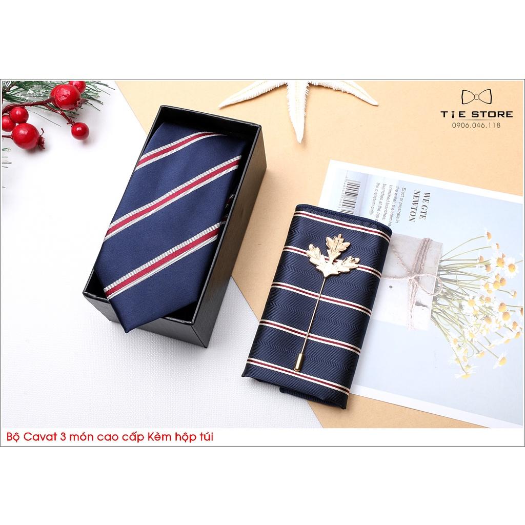 ✨Ca Vat bộ 3 món kèm hộp túi xách cao cấp, quà tặng chú rể, Cavat họa tiết xanh đen kẻ đỏ