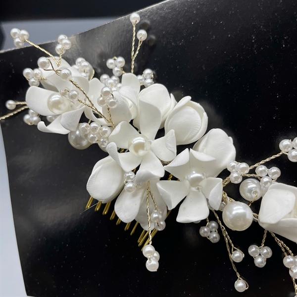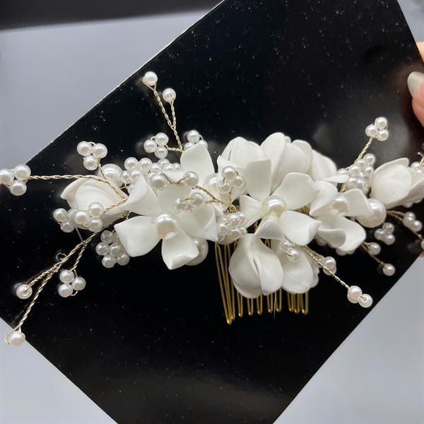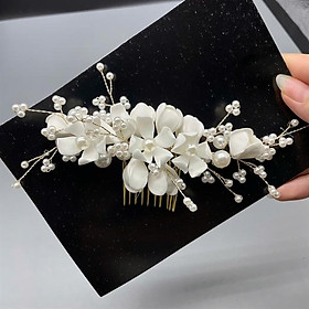 ✨Cài tóc cô dâu hoa đất sét trắng có sẵn xược cài mã 004 - 18cm