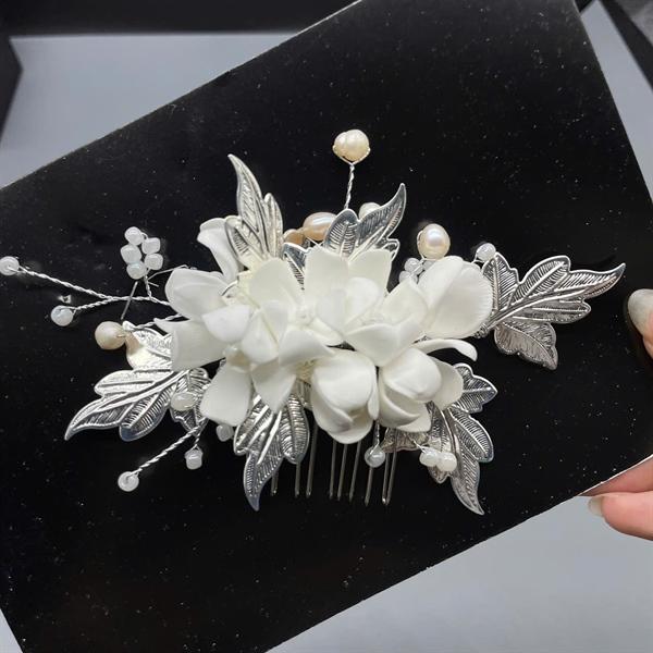 ✨Cài tóc cô dâu hoa đất sét trắng có sẵn xược cài mã 007 - 13cm