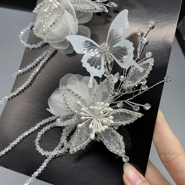 ✨Cài tóc cô dâu hoa hồng voan đính bướm mẫu mới t8/2024