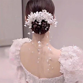 ✨Cài tóc cô dâu hoa linh lan hết chùm tua dây hoa rơi