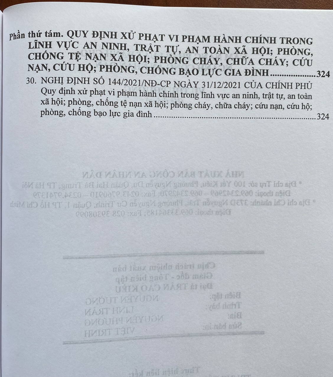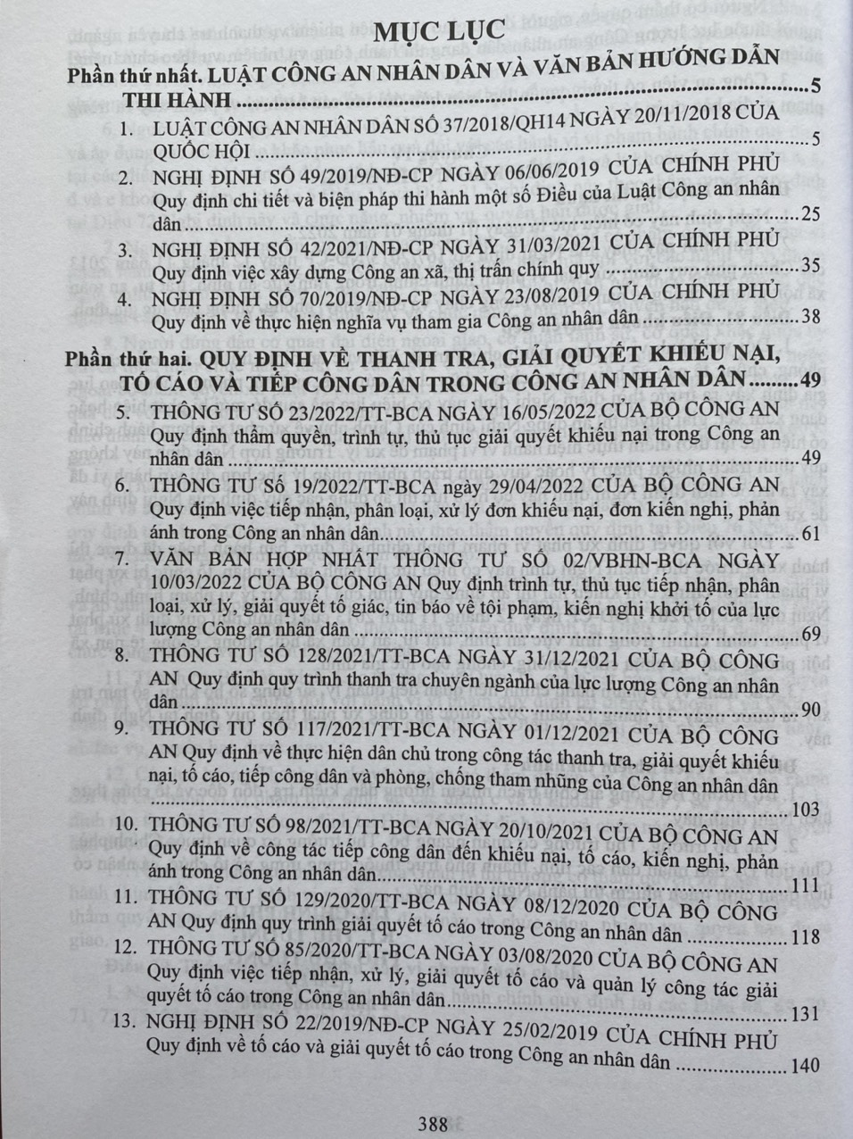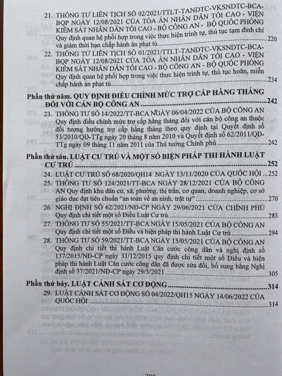 - Khổ sách: 20×28 cm ( Bìa Mềm ) Thời gian gần đây, Chính phủ, Bộ Công an đã ban hành nhiều văn bản pháp quy mới về tổ chức, hoạt động của ngành như Luật Cảnh sát cơ động số 04/2022/QH15 ngày 14/06/2022 của Quốc hội, Thông tư 23/2022/TT-BCA ngày 16/05/2022 Quy định thẩm quyền, trình tự, thủ tục giải quyết khiếu nại trong Công an nhân dân, Thông tư 19/2022/TT-BCA ngày 29/04/2022 Quy định việc tiếp nhận, phân loại, xử lý đơn khiếu nại, đơn kiến nghị, phản ánh trong Công an nhân dân, Thông tư số 06/2022/TT-BCA ngày 17/01/2022 Quy định quy trình thực hiện nhiệm vụ công tác phòng cháy, chữa cháy, cứu nạn, cứu hộ trong Công an nhân dân, Nghị định 144/2021/NĐ-CP ngày 31/12/2021 Quy định xử phạt vi phạm hành chính trong lĩnh vực an ninh, trật tự, an toàn xã hội; phòng, chống tệ nạn xã hội; phòng cháy, chữa cháy; cứu nạn, cứu hộ; phòng, chống bạo lực gia đình… Để giúp các cán bộ, chiến sĩ Công an nhân dân và bạn đọc thuận tiện trong việc tìm hiểu, nghiên cứu, sử dụng và thực hiện các quy định mới nhất của ngành, Nhà xuất bản Công An Nhân Dân cho xuất bản cuốn sách: ” CẨM NANG PHÁP LUẬT DÀNH CHO NGÀNH CÔNG AN NHÂN DÂN “ Cuốn sách gồm các phần chính sau: Phần thứ nhất. LUẬT CÔNG AN NHÂN DÂN VÀ VĂN BẢN HƯỚNG DẪN THI HÀNH Phần thứ hai. QUY ĐỊNH VỀ THANH TRA, GIẢI QUYẾT KHIẾU NẠI, TỐ CÁO VÀ TIẾP CÔNG DÂN TRONG CÔNG AN NHÂN DÂN Phần thứ ba. QUY ĐỊNH VỀ NHIỆM VỤ CÔNG TÁC PHÒNG CHÁY, CHỮA CHÁY, CỨU NẠN, CỨU HỘ, ỨNG PHÓ SỰ CỐ, THIÊN TAI TRONG CÔNG AN NHÂN DÂN Phần thứ tư. QUY ĐỊNH VỀ PHỐI HỢP VỚI CÁC CƠ QUAN CÓ THẨM QUYỀN TRONG GIẢI QUYẾT TỐ GIÁC, TIN BÁO VỀ TỘI PHẠM, KIẾN NGHỊ KHỞI TỐ, XÉT XỬ, CHẤP HÀNH ÁN PHẠT TÙ Phần thứ năm. QUY ĐỊNH ĐIỀU CHỈNH MỨC TRỢ CẤP HẰNG THÁNG ĐỐI VỚI CÁN BỘ CÔNG AN Phần thứ sáu. LUẬT CƯ TRÚ VÀ MỘT SỐ BIỆN PHÁP THI HÀNH LUẬT CƯ TRÚ Phần thứ bảy. LUẬT CẢNH SÁT CƠ ĐỘNG Phần thứ tám. QUY ĐỊNH XỬ PHẠT VI PHẠM HÀNH CHÍNH TRONG LĨNH VỰC AN NINH, TRẬT TỰ, AN TOÀN XÃ HỘI; PHÒNG, CHỐNG TỆ NẠN XÃ HỘI; PHÒNG CHÁY, CHỮA CHÁY; CỨU NẠN, CỨU HỘ; PHÒNG, CHỐNG BẠO LỰC GIA ĐÌNH Luatvietbook xin trân trọng giới thiệu cuốn sách đến bạn đọc!