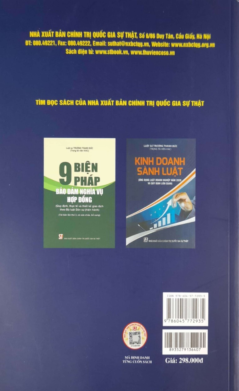 Cẩm nang pháp luật ngân hàng (Nhận diện những vấn đề pháplý) (Tái bản có sửa chữa, bổ sung) Tác giả: Luật sư Trương Thanh Đức Nhà xuất bản: Chính trị Quốc gia Sự thật Ngày phát hành:12.2021 Số trang: 626 Khổ sách: 16*24cm Hình thức bìa: Bìa mềm Giá bìa: 298.000 đ