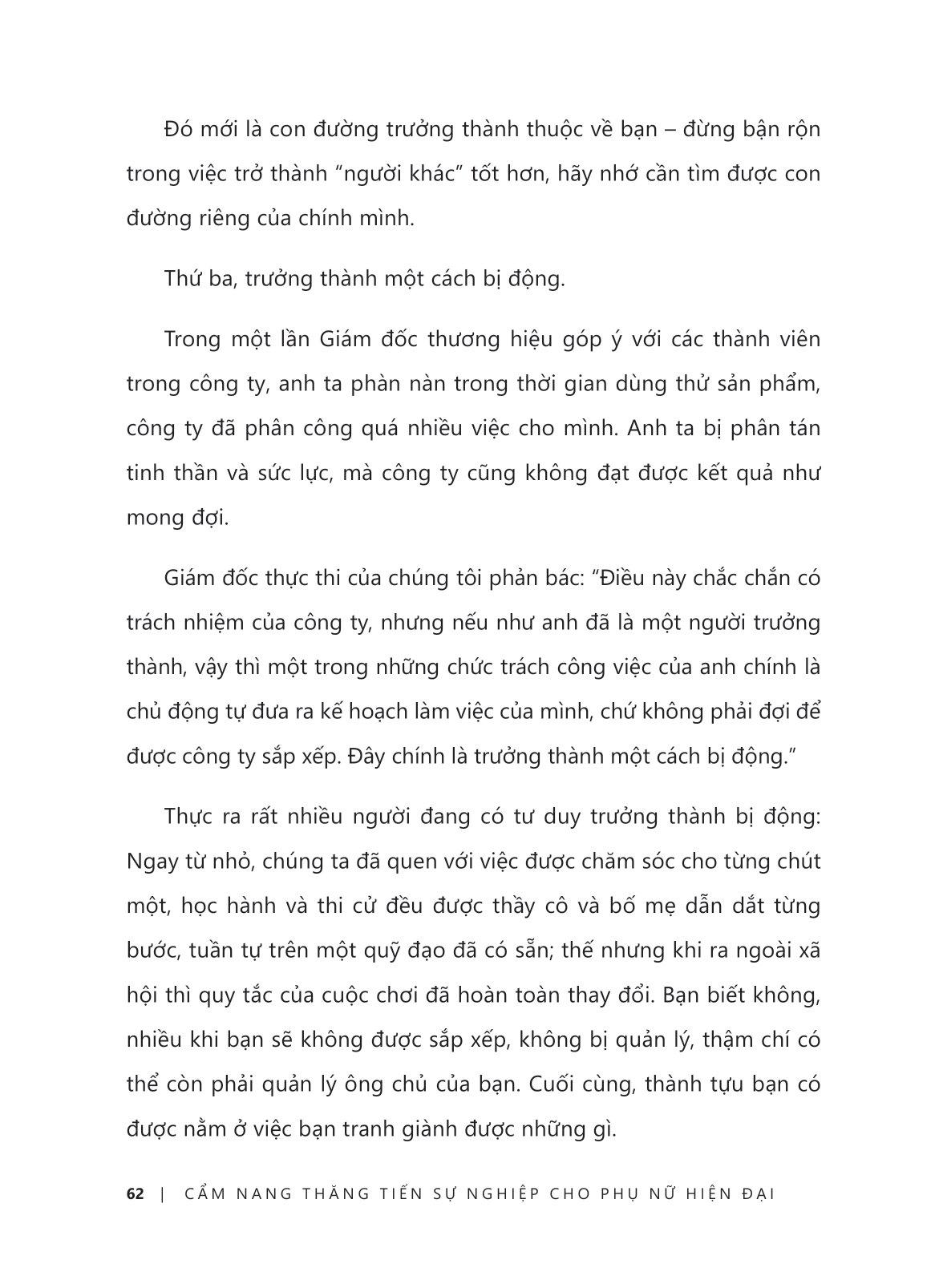 “Thực ra, có rất nhiều người đang có tư duy trưởng thành bị động. Ngay từ nhỏ, chúng ta đã quen với việc được chăm sóc cho từng chút một, nhưng khi ra ngoài xã hội thì quy tắc của cuộc chơi đã hoàn toàn thay đổi. Bạn biết không, nhiều khi bạn sẽ không được sắp xếp, không bị quản lý, thậm chí có thể còn phải quản lý cả ông chủ của bạn. Cuối cùng, thành tựu bạn có được nằm ở việc bạn đã tranh giành được những gì.”