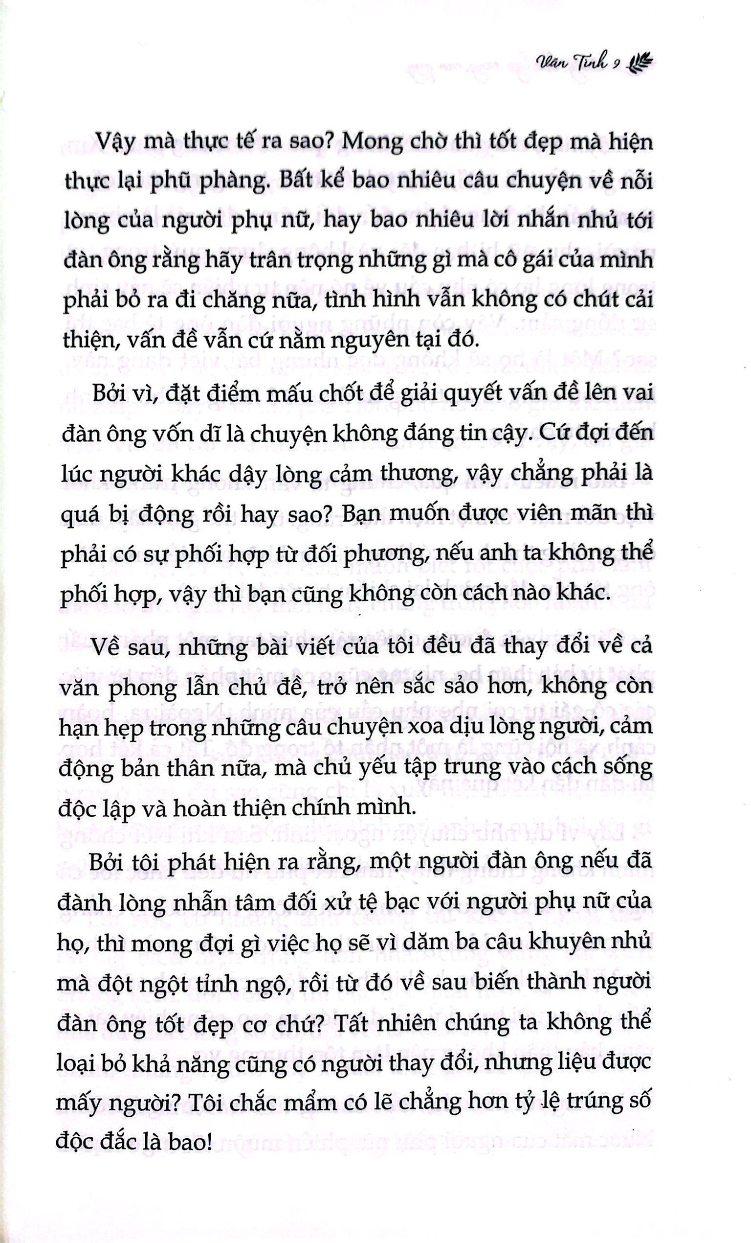 Này cô gái, bất luận cuộc đời mang đến cho ta bao nhiêu chông gai thử thách, xin đừng tự coi nhẹ chính mình, đừng buông bỏ bản thân và phụ thuộc vào người khác. Hãy luôn giữ vững niềm tin rằng, số phận của ta nằm trong chính ta, không nằm trong tay ông Trời. Độc lập về cuộc sống, tư tưởng và kinh tế giúp chúng ta vĩnh viễn không mất đi quyền lựa chọn trong tay mình. Không ai thay chúng ta chịu trách nhiệm về cuộc đời mình. Thế nên, dù đang hạnh phúc đi nữa, trên đường đời cũng không tránh khỏi những tháng ngày phải độc bước tiến lên. Càng độc lập càng cao quý – Hãy nhớ lấy, cô gái nhé!