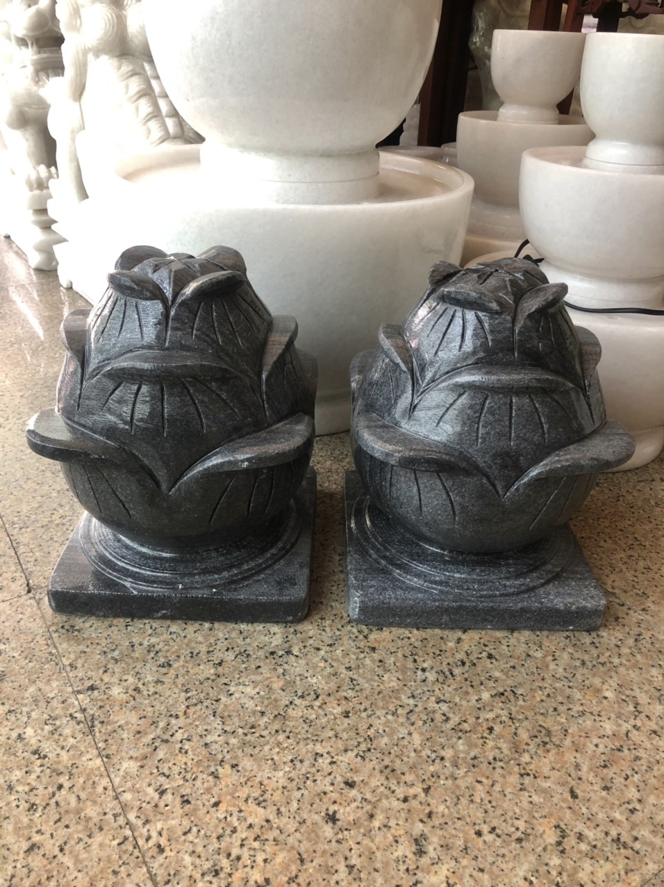 ✨Cặp búp sen đá trang trí đá cẩm thạch vân đen đế vuông trang trí mộ, đền thờ - Cao 25 cm
