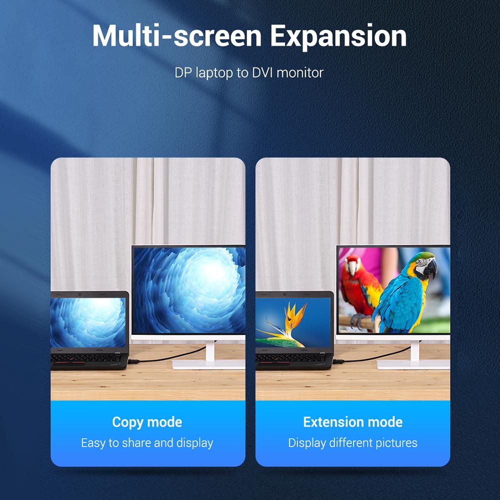 Features: Support 1080P HD and immersive 3Deffect, enjoy incredible clear picture. Multiple-modes, copy mode and extension mode. Plug and play, no need to install driver, support hot swap. Triple shielding, gold-plated interface,PVC jacket and arc concave shell. HD vidoe conversion chip with low consumption and high performance. Anti-loosing design, press the hook button when pulling out. Specification: Brand: Vention Name: DP to DVI(24+1) Cable Model: HAF Color: Black Interface: DPI 1.4 Male, DVI (24+1) Male Shell: DP/ABS;DVI/PVC Chip: Parade PS8121E Shielding: Aluminum Foil+ Metal Mesh Jacket: PVC OD: 5.2mm Interface Technics:Gold-plated Length: 1/1.5/2m(Optional) Resolution: 1080P@60Hz Conductor: Tinned Copper Packing list: 1 *DP to DVI(24+1) Cable