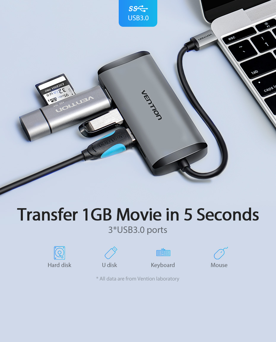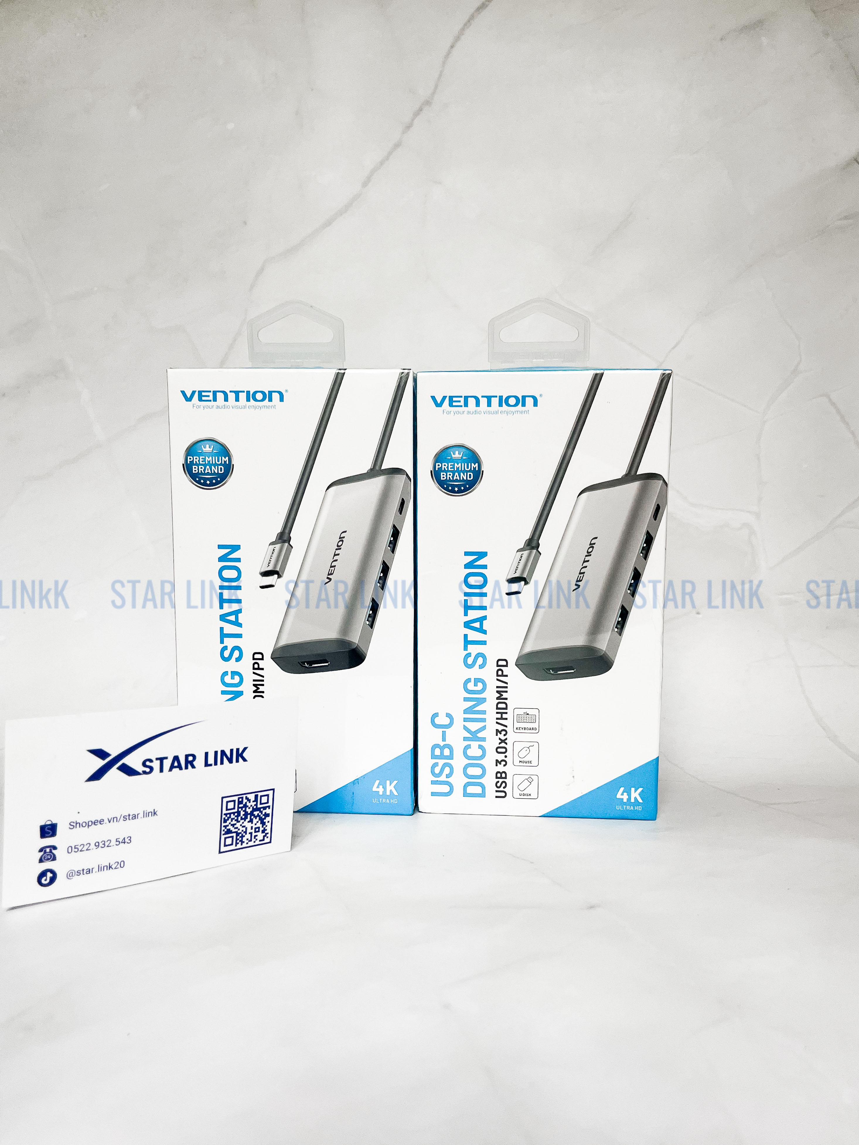 ✨Cáp chuyển đổi Type-C sang HDMI + 3 cổng USB 3.0 + Type-C PD Vention CNBHB - hàng chính hãng