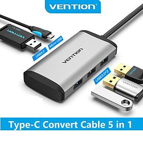✨Cáp chuyển USB Type C to 4*USB 3.0 + PD Micro USB Vention TGCHB (5 in 1) - Hàng chính hãng