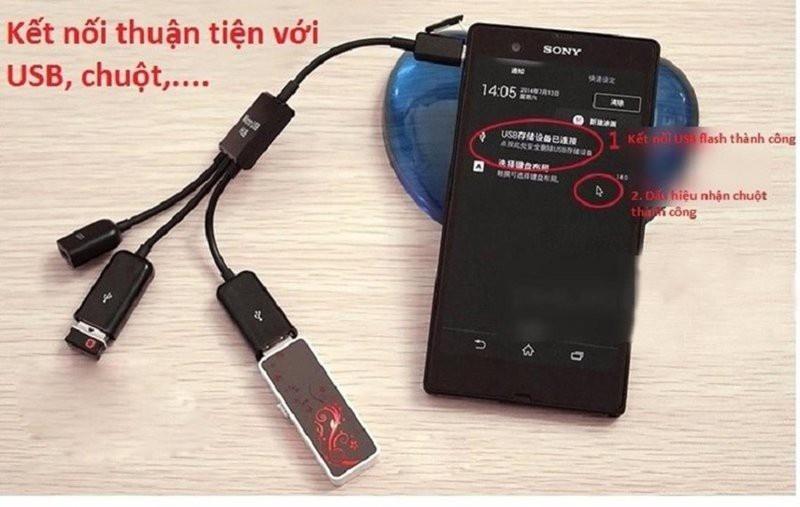 Micro USB HUB OTG 3 trong 1 kết nối điện thoại, máy tính bảng