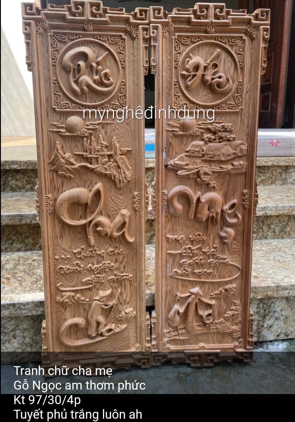 ✨Cặp Tranh chữ cha mẹ bằng gỗ ngọc am thơm nức kt 30x97x4cm