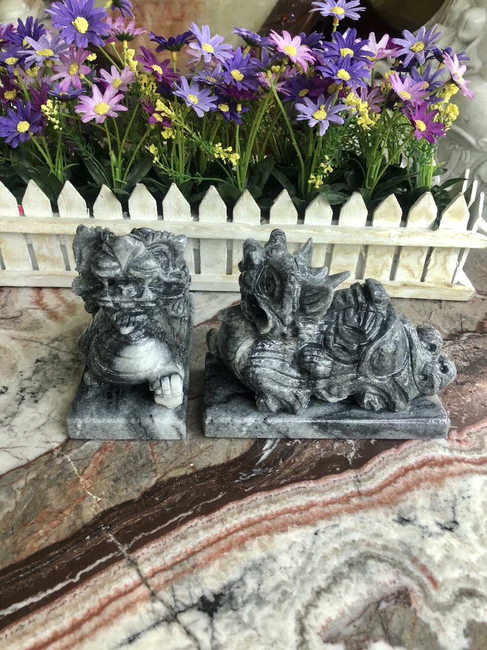 ✨Cặp Tỳ Hưu phong thủy đá cẩm thạch vân đen có đế - Dài 15 cm