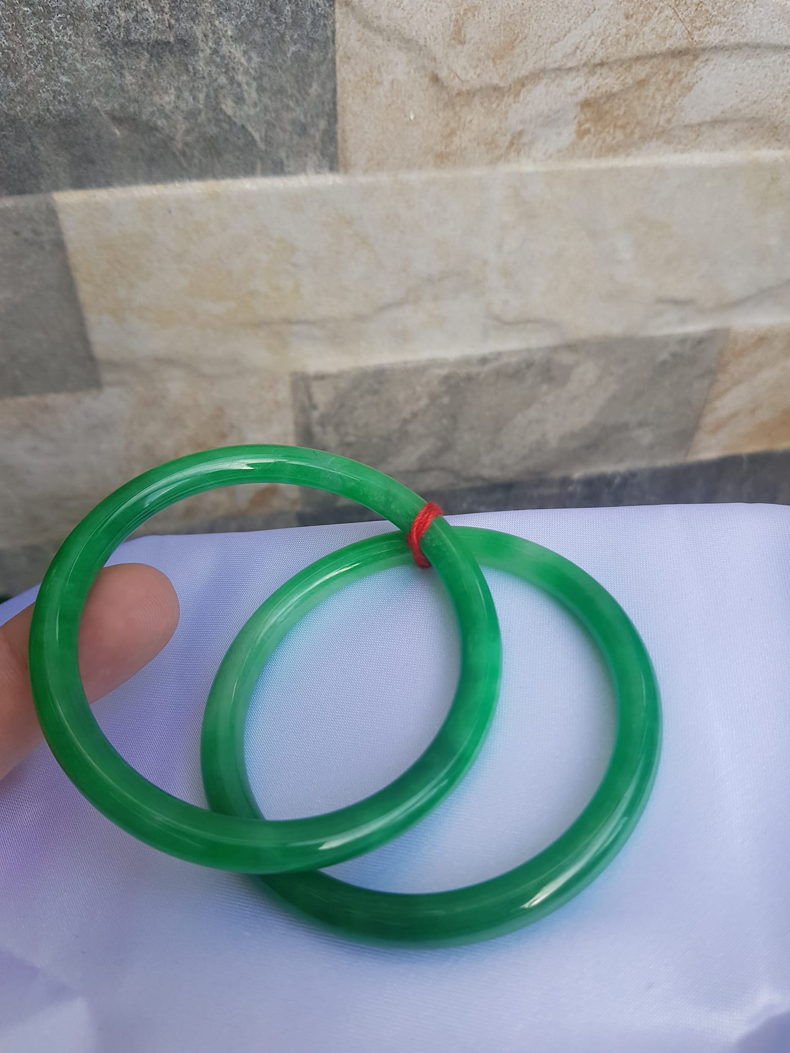 Vòng CẨM THẠCH DLý 49 Ni 49mm x cọng 7mm Màu Xanh Lá Đậm Hợp Nữ mệnh Mộc Hỏa Cân nặng 45kg -> 51kg đeo xinh tay ạ Sản phẩm này là tài sản