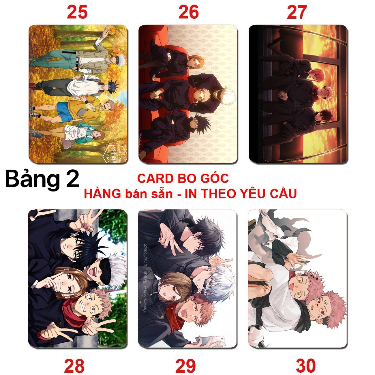 ✨Card bo góc JuJutsu Kaisen 6 ảnh khác nhau/ Thẻ card anime JuJutsu Kaisen