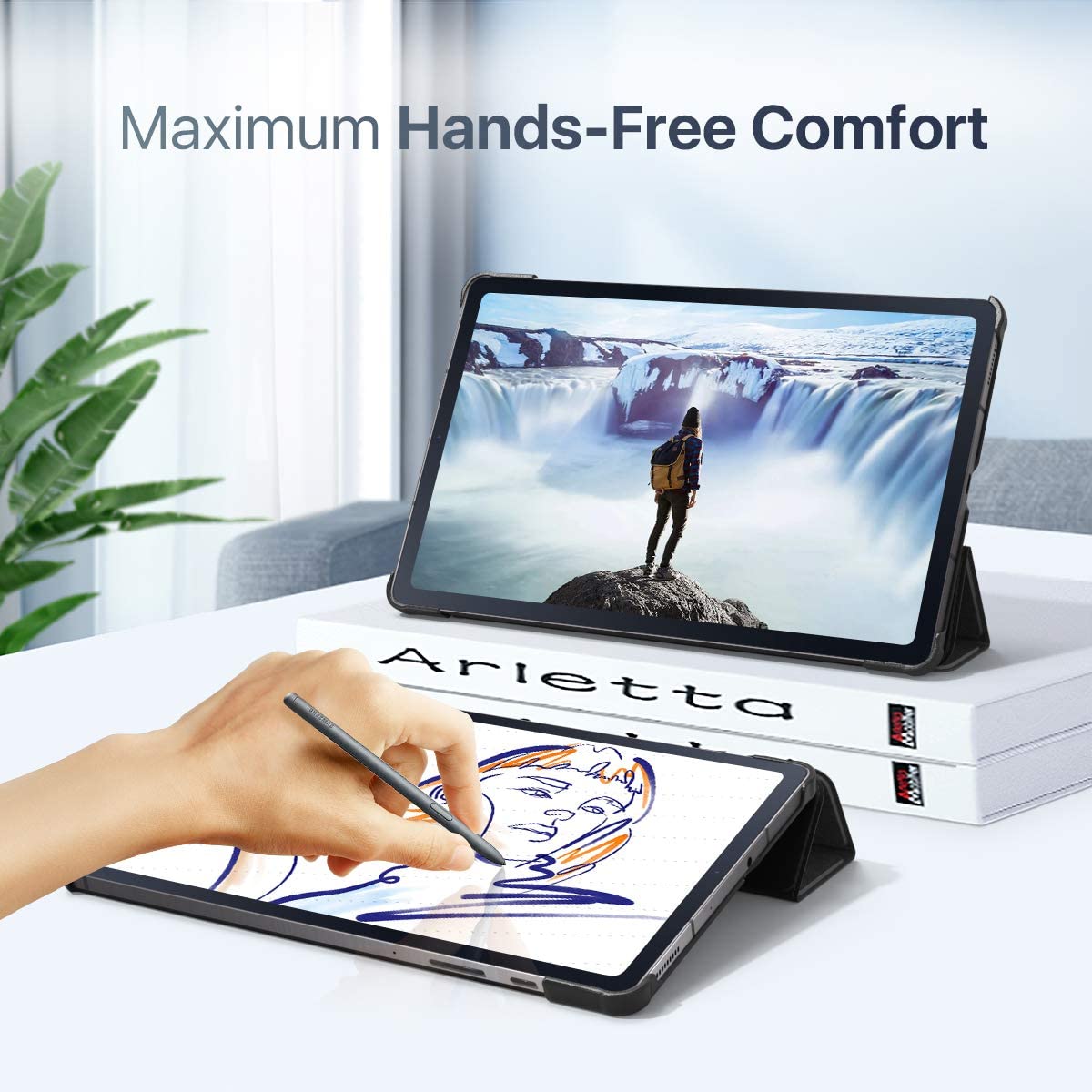 Phần mặt lưng Case bao da chống sốc siêu mỏng cho máy tính bảng Samsung Galaxy Tab S5e (T720 / T725) 10.5 inch được thiết kế tựa như chiếc giá đỡ có thể thay đổi độ nghiêng phù hợp với nhu cầu làm việc của bạn.