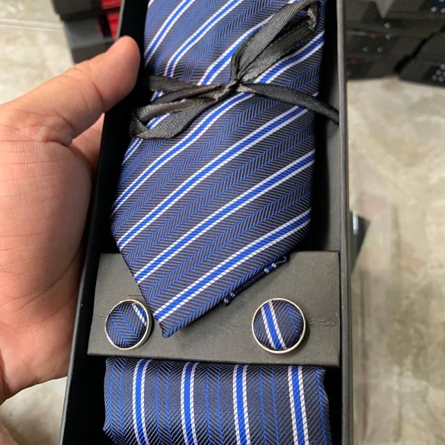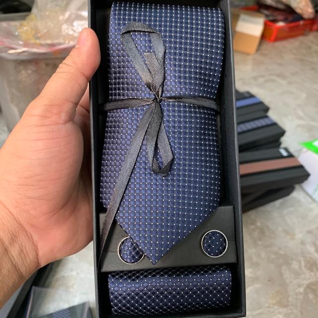 Hộp quà tặng gồm 1 cà vạt nam 8cm kích cỡ chuẩn 8cmx150 k. 1 hộp đựng cà vạt , 01 Khăn túi áo véc 20x20 cm , 1 cặp khuy áo măng sét cũng