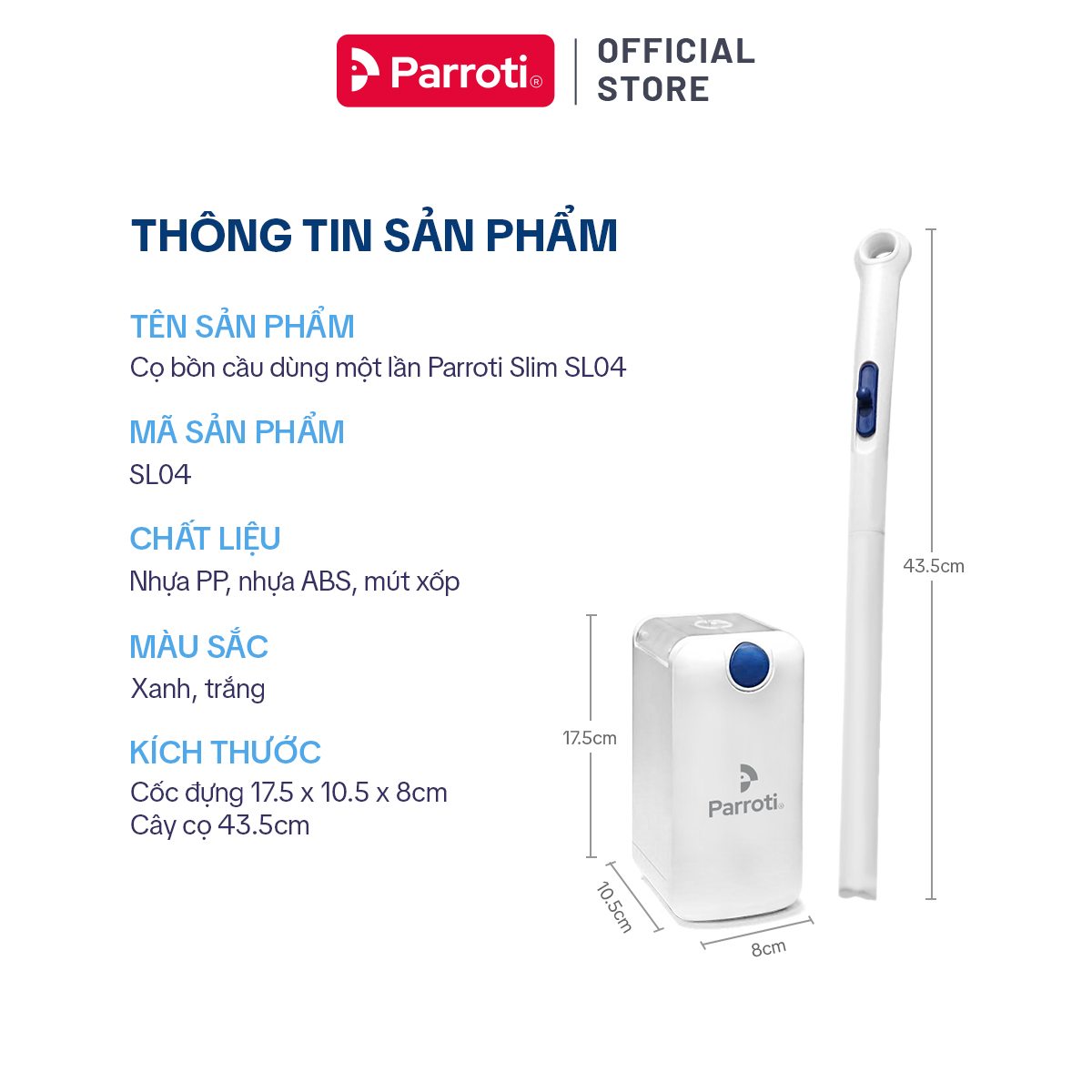 Mua tại TiktokCọ bồn cầu dùng 1 lần, cọ toiet nhà vệ sinh cao cấp 2 trong 1, có dán tường,Đầu lau có kèm chất tẩy rửa, dễ dàng thay thế và có thể xoay 360 độ - Parroti Slim - SL04 giúp việc cọ rửa bồn cầu, toilet được sạch hơn và tiết kiệm thời gian, không phải tiếp xúc trực tiếp với hóa chất, an toàn và không bị mùi nước tẩy.