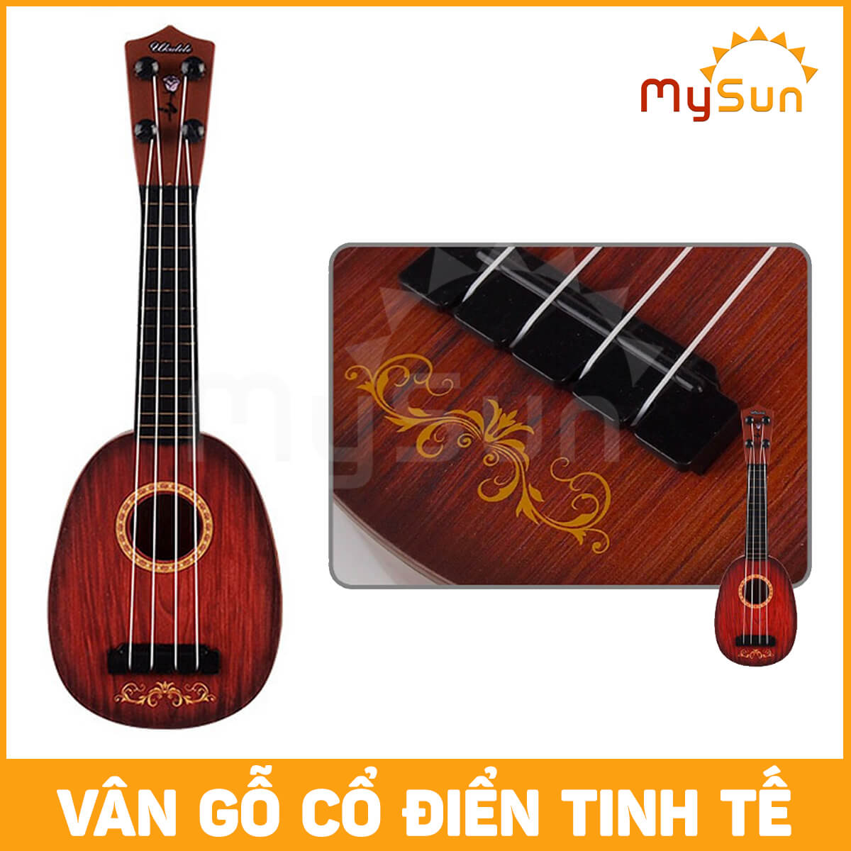- Ukulele đồ chơi nhạc cụ có 4 dây cao cấp như cây đàn thật. THÔNG SỐ BỘ ĐÀN UKULELE 4 DÂY MINI CHO BÉ .