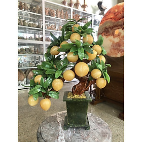 Hợp mệnh Thổ - Kim Chất liệu: Đá thạch anh vàng Kích thước: Dài 28 cm x Rộng 18 cm x Cao 40 cm Khối lượng: 3,8 kg Cây tài lộc là biểu tượng của