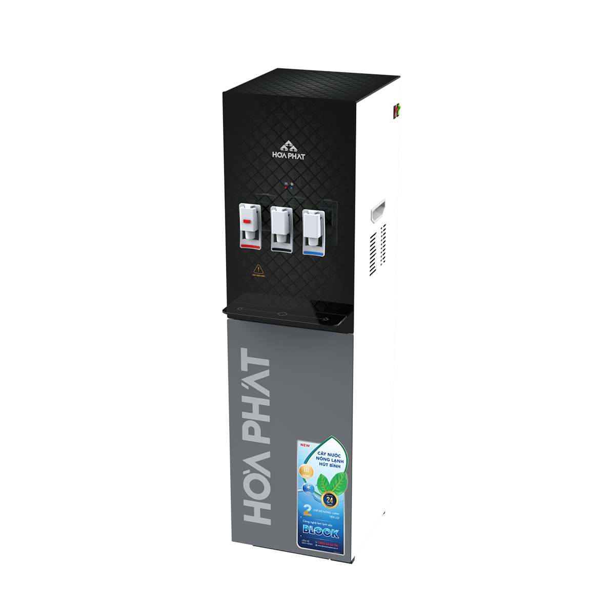 - Bảo hành vượt trội lên tới 24 tháng đối với các linh kiện làm lạnh. Cây nước nóng lạnh hút bình Hòa Phát HWP BS1A Cây nước nóng lạnh hút bình HWP BS1A có 3 chế độ nước tiện lợi với công nghệ BLOCK làm lạnh nhanh và sâu. Được thiết kế kiểu dáng độc quyền hiện đại với ngoại quan toàn bộ kính cường lực tràn viền và tích hợp tính năng an toàn tiên phong trên thị trường. An toàn tuyệt đối cho người dùng Tính năng an toàn tiên phong trên thị trường: Chống đun khô bình nóng khi chưa đầy nước; Cảnh báo hết nước, Cảnh báo cửa mở, Bảo vệ quá nhiệt kép, Khóa trẻ em vòi nước nóng, dây nguồn chống giật. Cây nước nóng lạnh hút bình Hòa Phát HWP BS1A được chế tạo bằng vật liệu an toàn thực phẩm SUS304. 3 chế độ nước tiện lợi: Nóng, lạnh và nguội